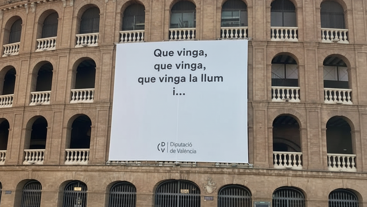 La instalación de una lona en el BIC de la Plaza de Toros con el mensaje: «Que vinga, que vinga, que vinga la llum i…», de una canción del grupo Al Tall, ha generado controversia y polémica, siendo un claro ejemplo para analizar los límites y las «zonas grises» de la aplicación de la Ley de Patrimonio Cultural Valenciano (LPCV) 4/1998.
