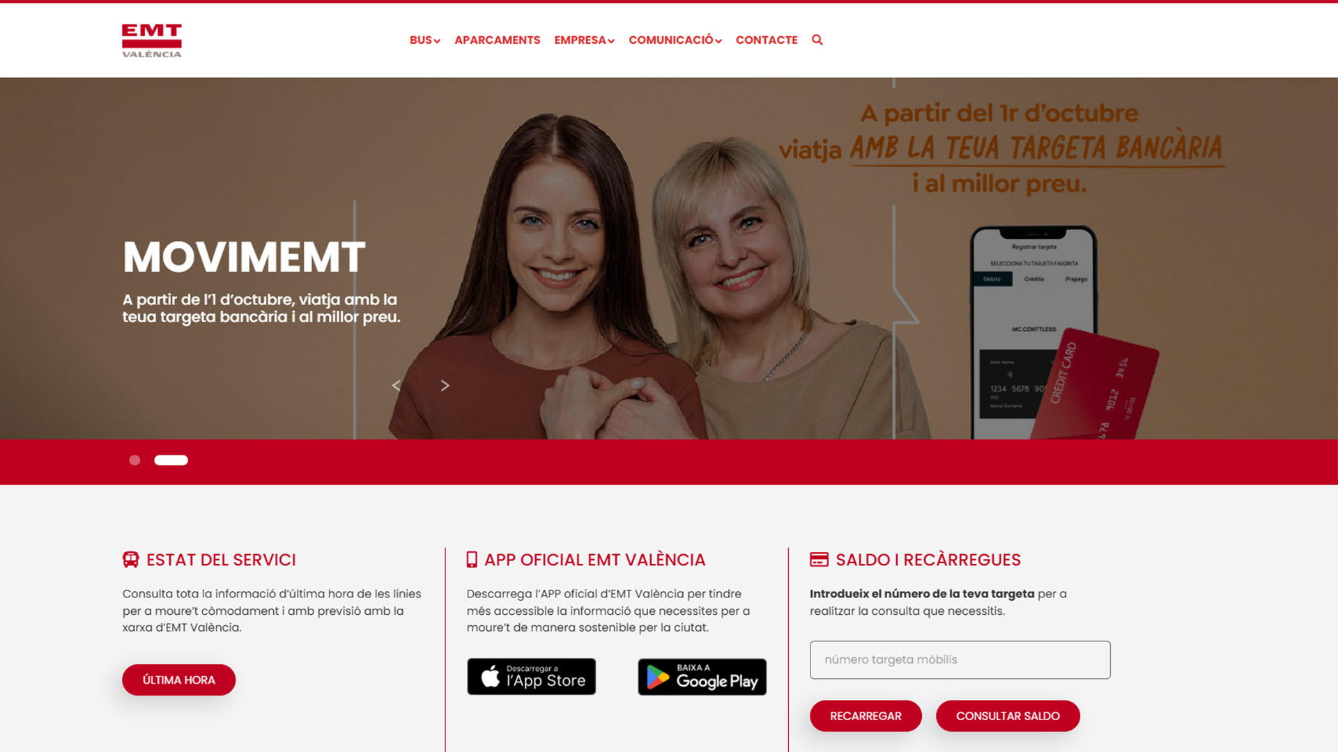 La EMT lanza una nueva web más accesible y gestiona ya el sistema MovimEMT con tarjeta bancaria