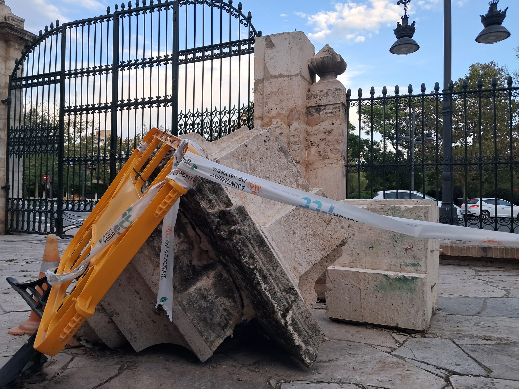 Lo que es inaudito es que han pasado 4 meses y los restos de la puerta siguen allí tirados, esperando una solución o una reparación, pero allí siguen, simbolizando el total abandono del patrimonio cultural valenciano por la alcaldesa María José Catalá