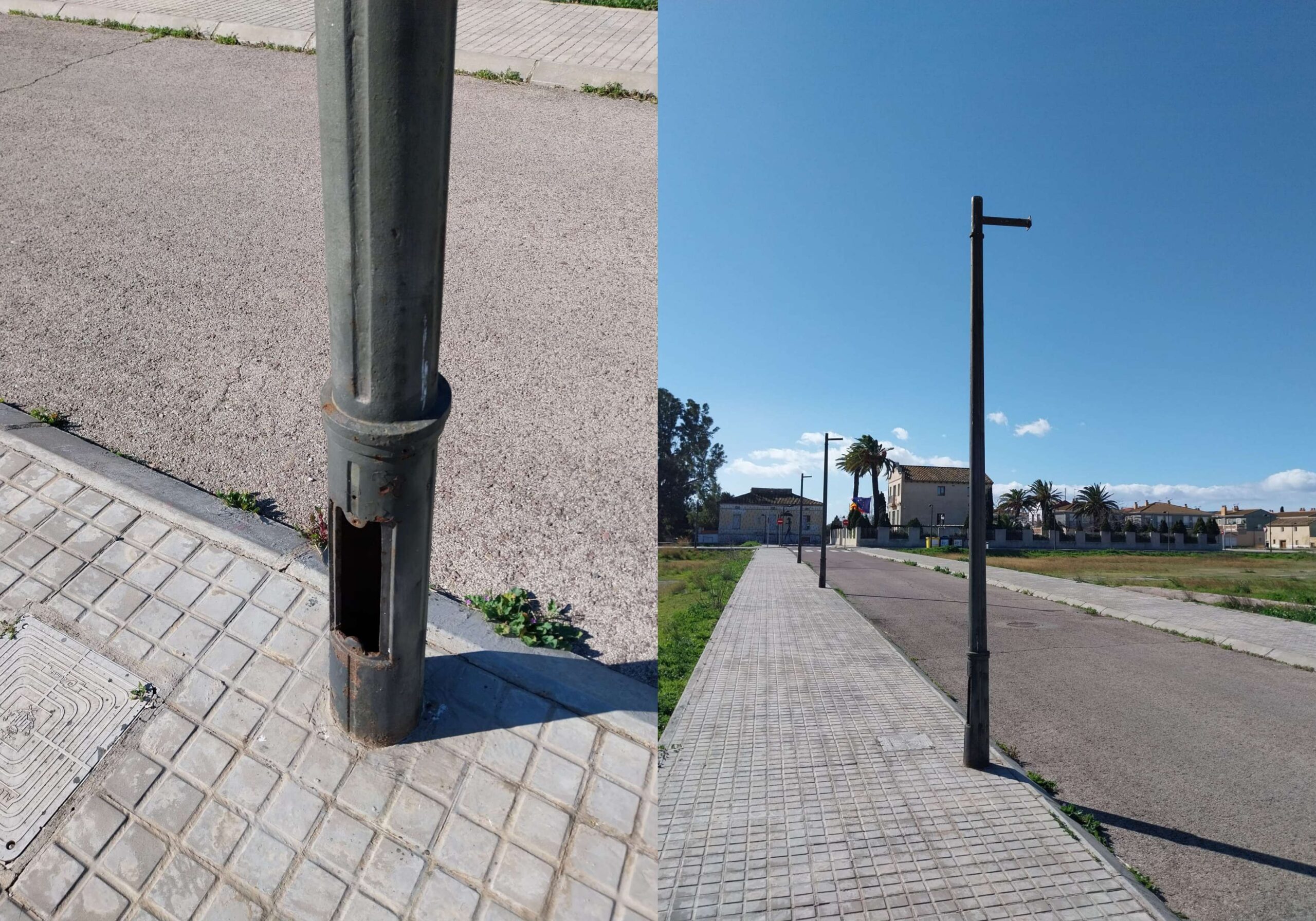 El barrio valenciano de La Punta no gana para sustos. hace unos días que no funciona el alumbrado público de algunas calles, justo las más cercanas a la propia Alcaldía pedánea y es que los amigos de lo ajeno han dejado sólo la base de la farola y porque está falcada al suelo con cemento…