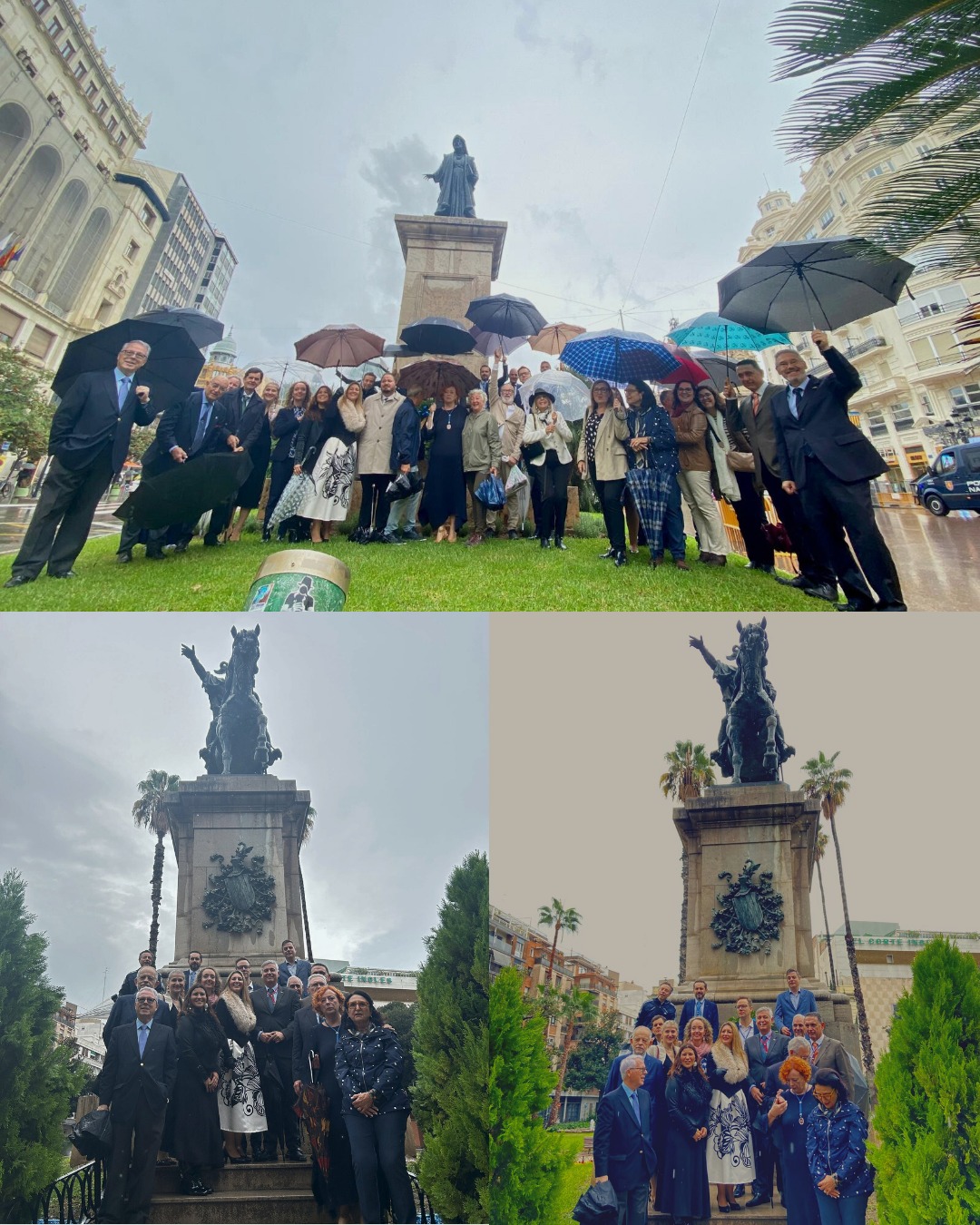 🌧️ Ni la pluja ha pogut en la tradició. Una delegació de la Real Acadèmia de Cultura Valenciana (RACV) ha realisat hui la tradicional ofrena al Rei En Jaume I, als peus del monument erigit en el seu honor en la plaça Alfonso el Magnànim.