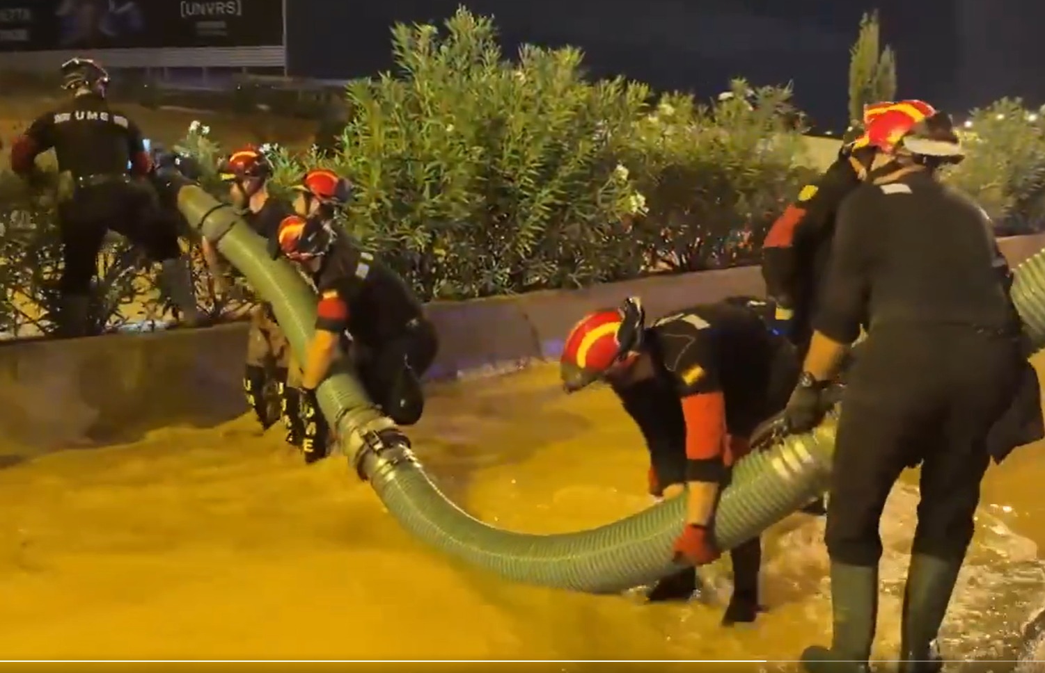 Durante la madrugada, los efectivos de la UME comenzaron a operar en varios puntos críticos, utilizando equipos de bombeo de gran capacidad, entre ellos la “Bomba Xylem”, trasladada especialmente para estas labores.