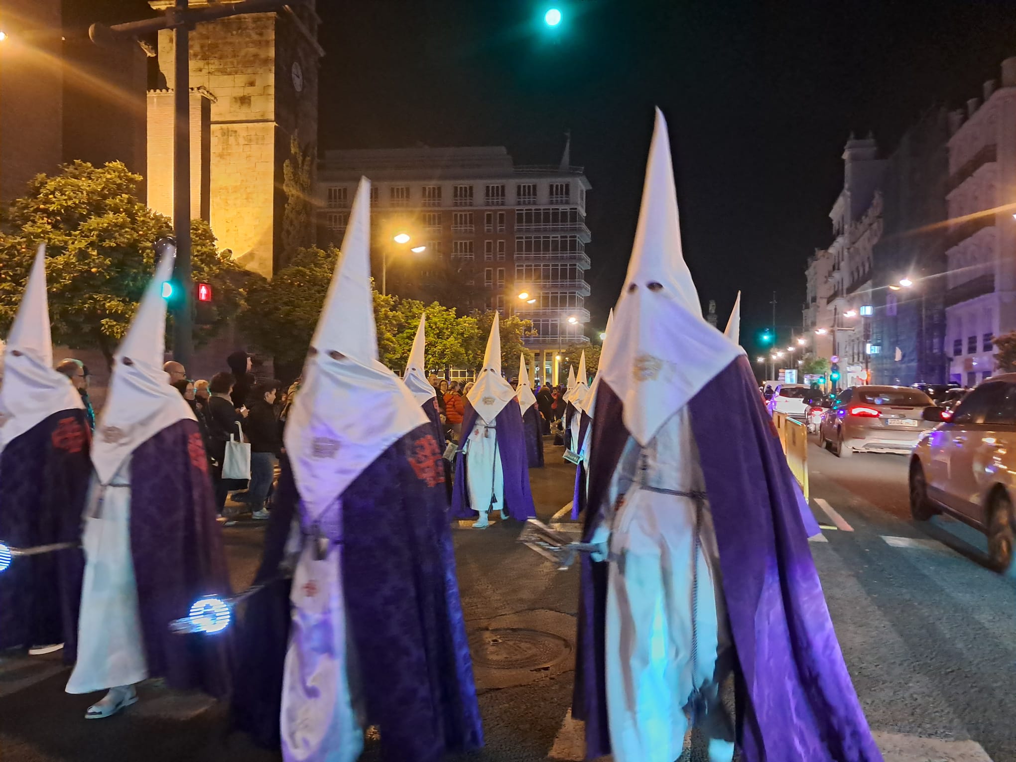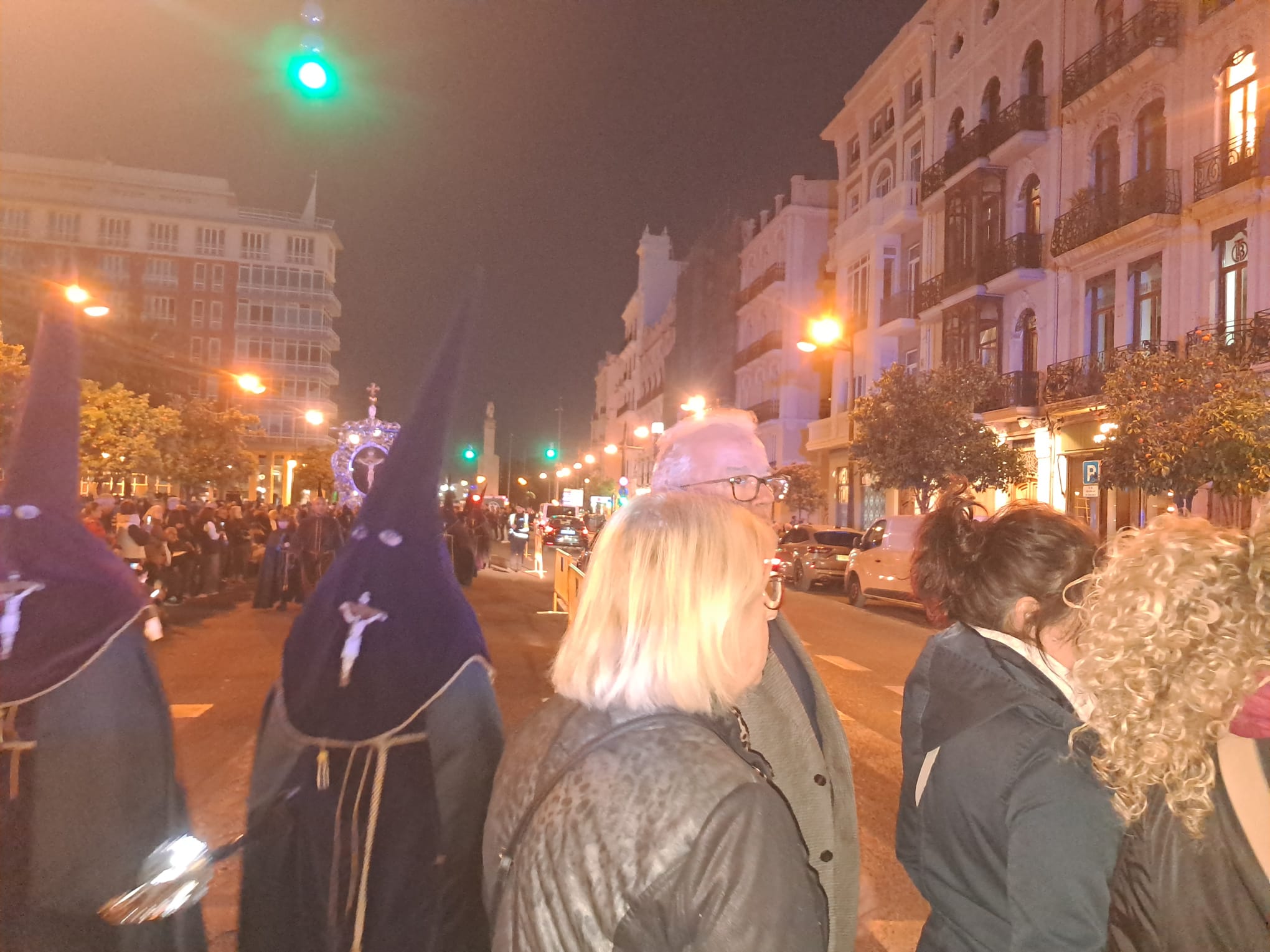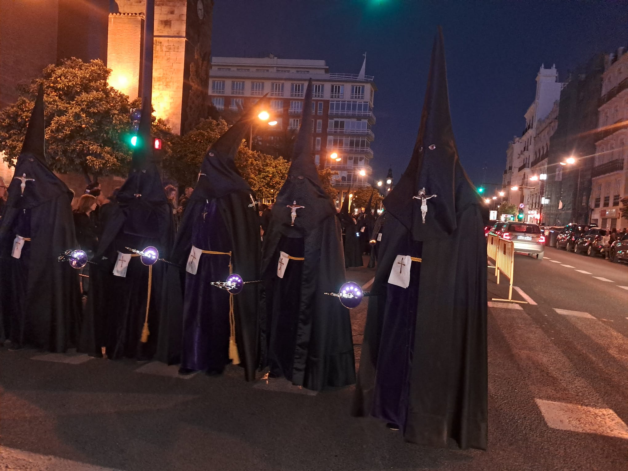 Mientras la policía local tenía órdenes de no permitir en esta zona que se pudiera observar el paso del cortejo, no precintó el paso de peatones y finalmente los peatones invadían tanto la calzada como por medio de la procesión en una organización manifiestamente mejorable. Vimos bicicletas, patinetes y personas con carritos de compra entre los nazarenos que tenían que sacar del cortejo los responsables de organización de cada cofradía visiblemente enfadados con la nula organización de la policía local que trataba de impedir que las personas caminaran por la calzada abierta a la circulación y hubiera alguna desgracia.