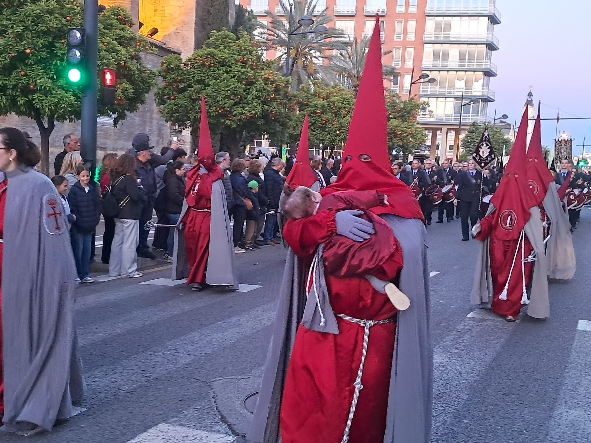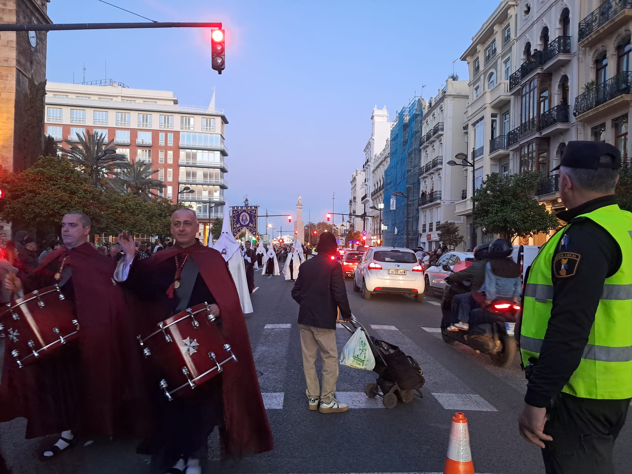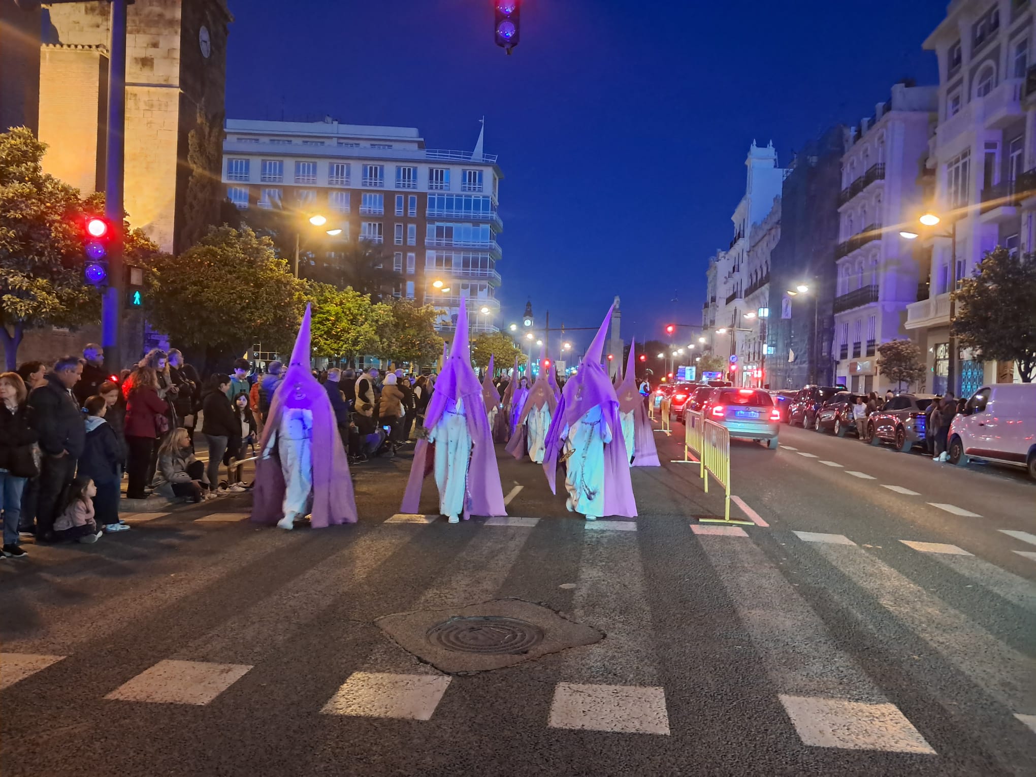 Cuando los peatones querían cruzar de un lado a otro se encontraban atrapados entre la procesión y la circulación de vehículos y eran dos las opciones, o invadían la calzada y caminaban entre los coches o invadían la procesión… mucho esmero no tuvo el que diseñó ese espacio, tendrían que haber cerrado el paso de peatones o regulado el paso mediante conos o vallas que protegieran a los peatones.