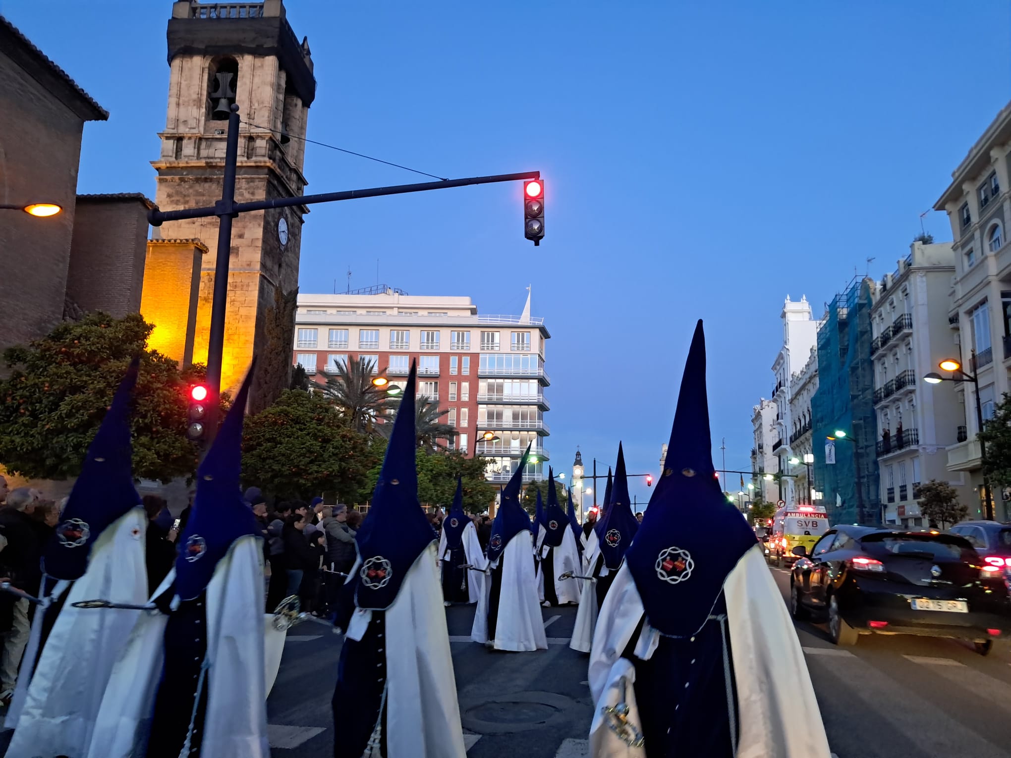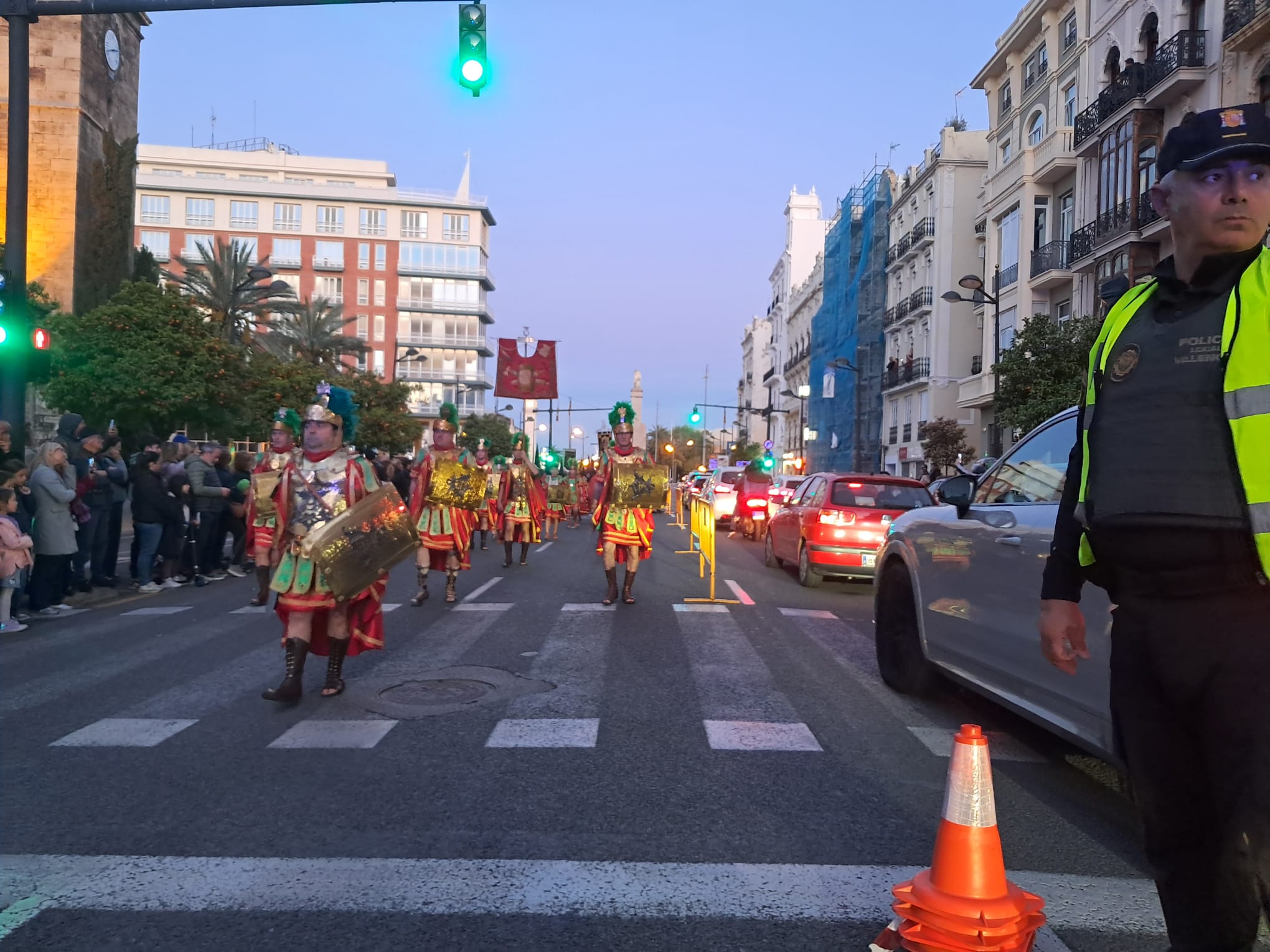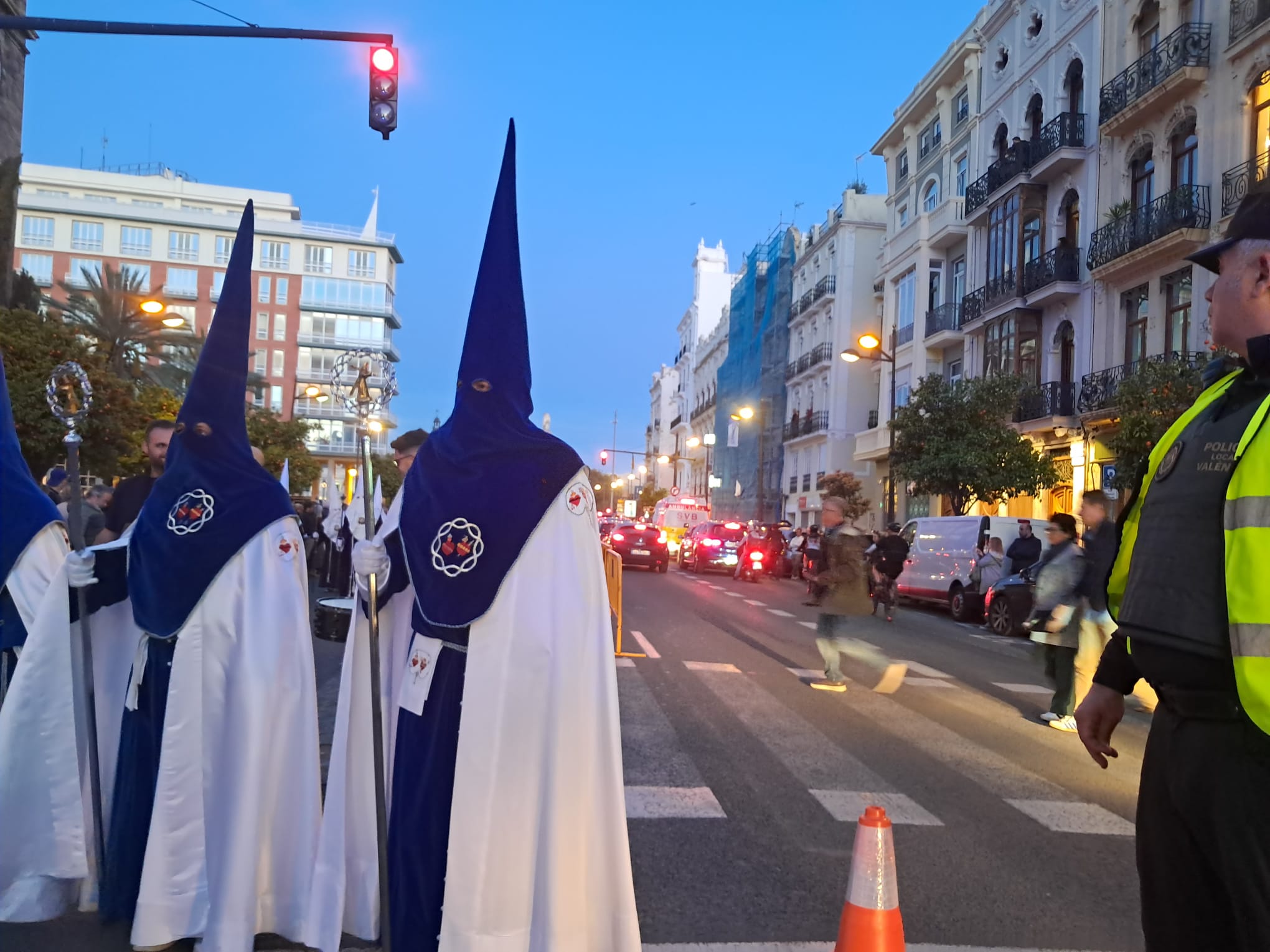El desastre absoluto era el dispositivo policial para salir desde la Plaza del Tribunal de las Aguas y recorrer unos 200 metros en sentido contrario la Av. del Puerto para meterse por la calle de Abastos, separando una linea de vallas la procesión de los dos carriles abiertos a la circulación.