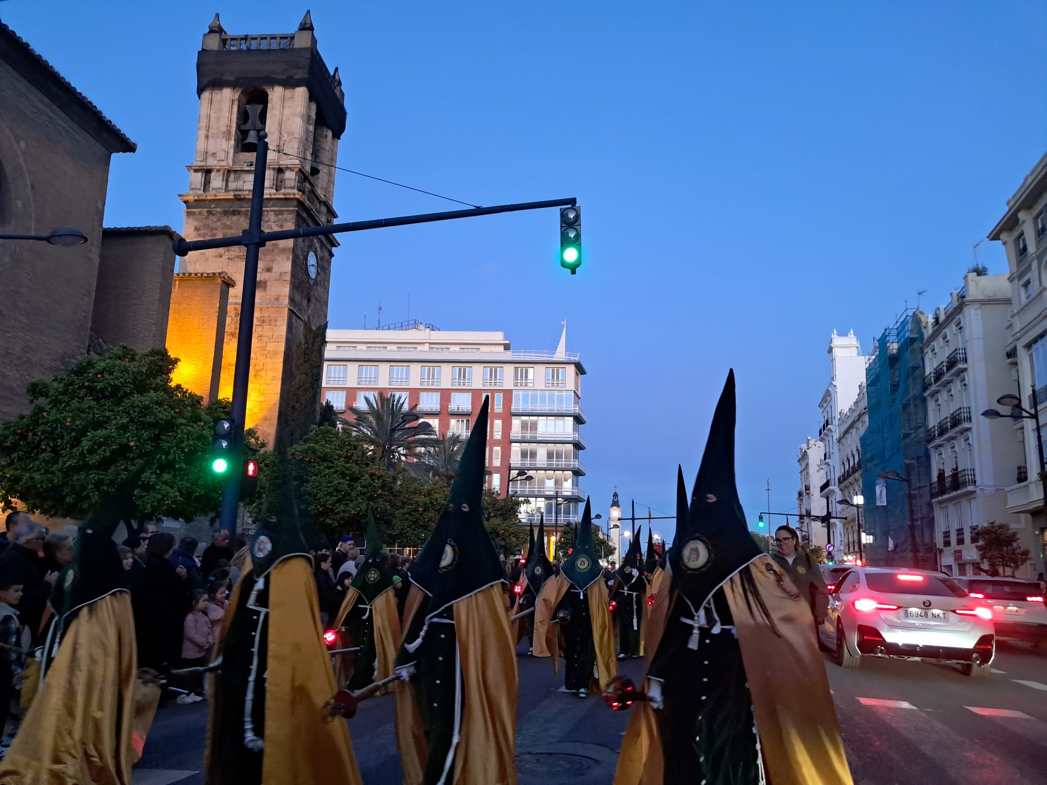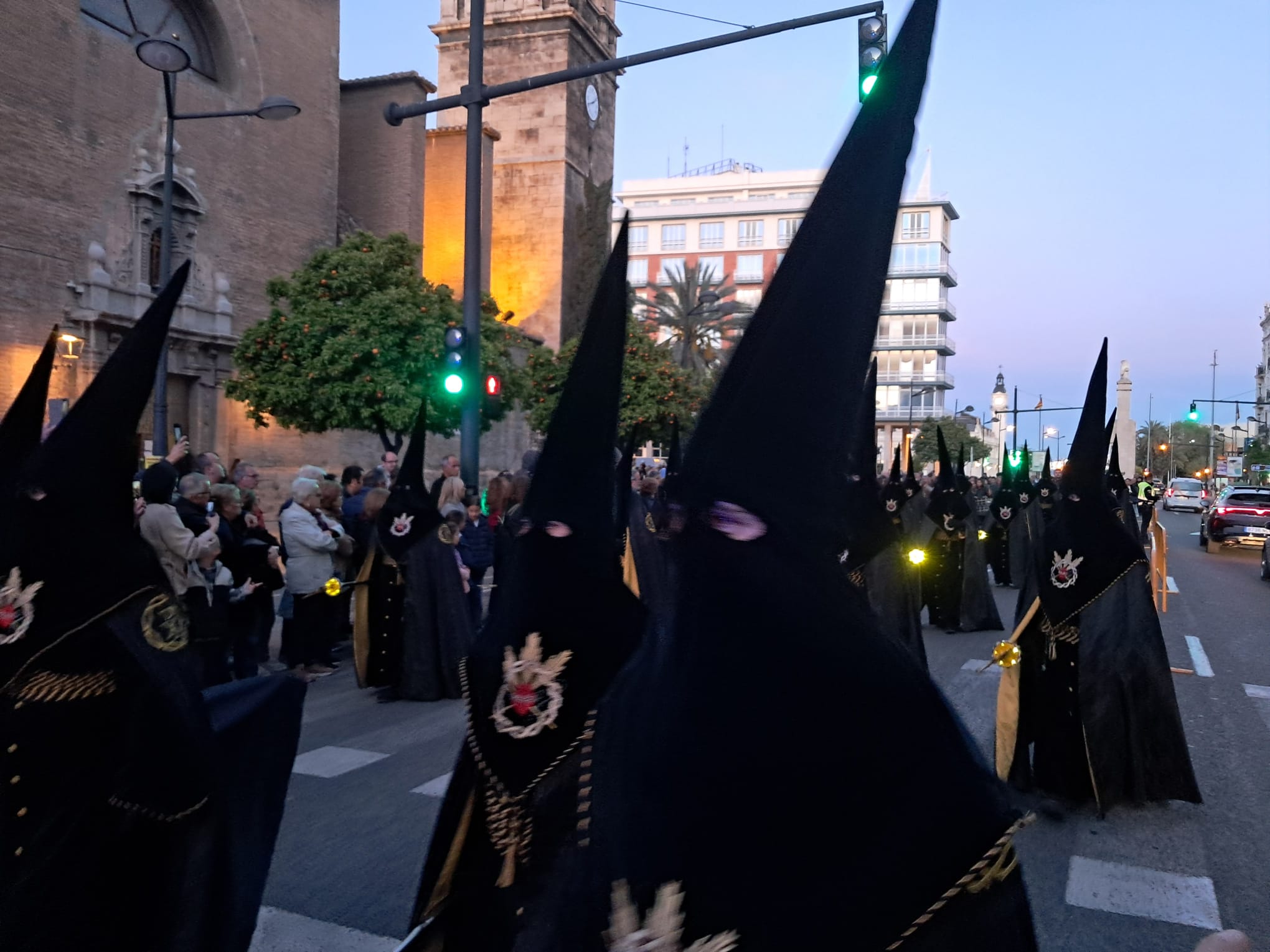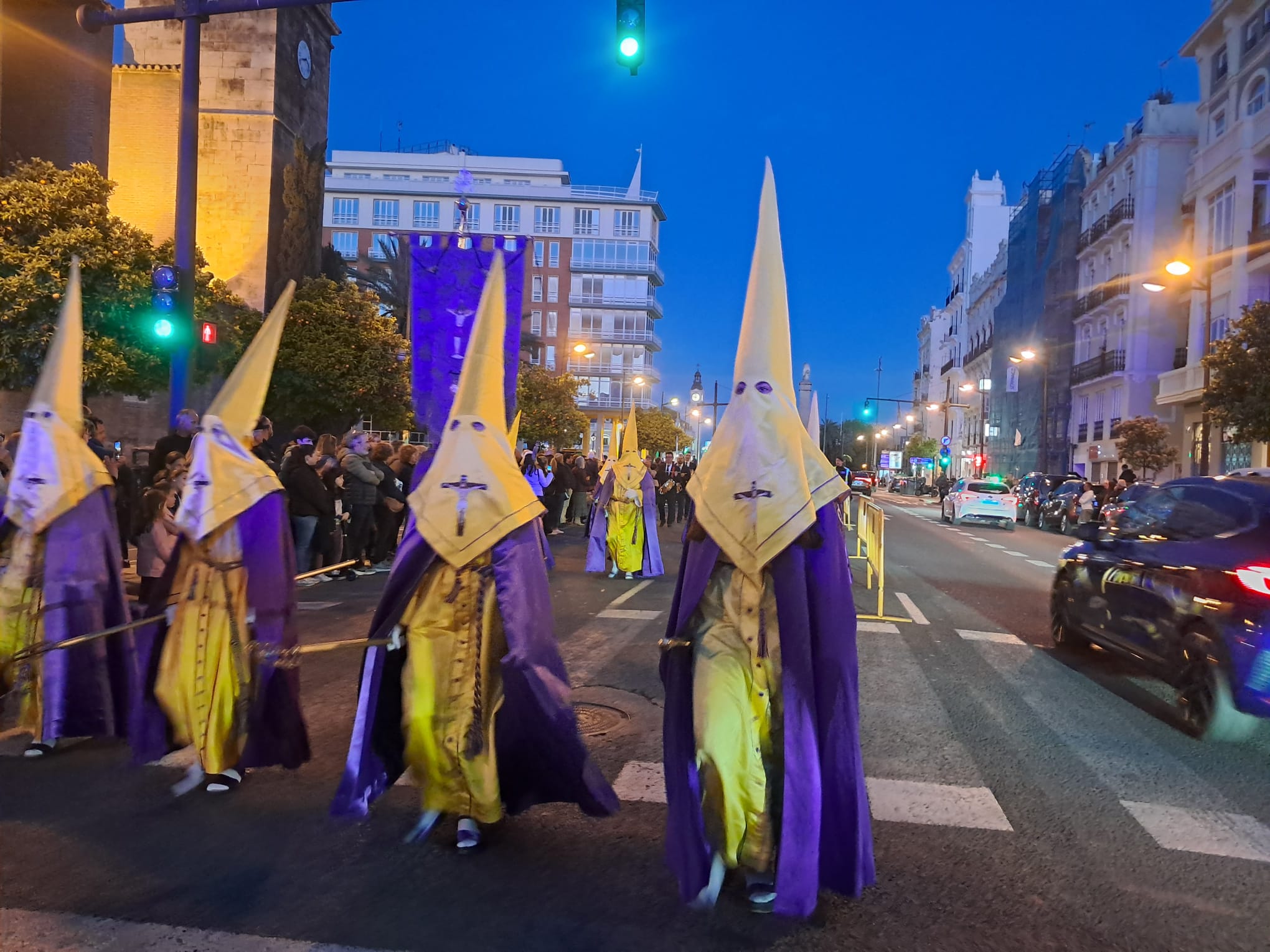 El desastre absoluto era el dispositivo policial para salir desde la Plaza del Tribunal de las Aguas y recorrer unos 200 metros en sentido contrario la Av. del Puerto para meterse por la calle de Abastos, separando una linea de vallas la procesión de los dos carriles abiertos a la circulación.