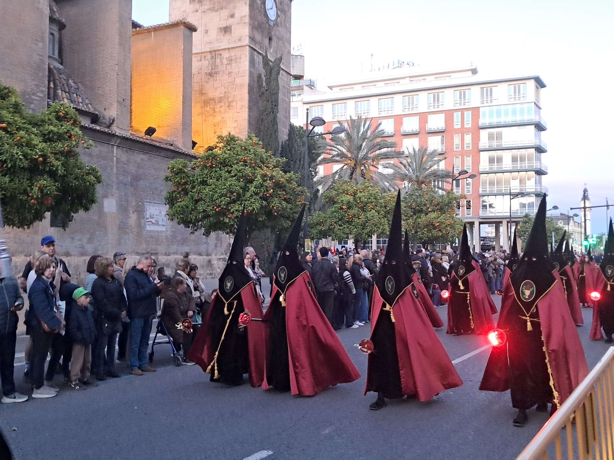 Una Misa en la Parroquia de Santa María del Mar precedió al desfile a paso rápido de los penitentes de las 31 cofradías que componen la Semana Santa Marinera. Un acto rápido que recorrió las parroquias que actúan como sedes de la Semana Santa Marinera, Santa María del Mar (Grao), Parroquia del Rosario (Canyamelar), Parroquia de Cristo Redentor-San Rafael, en el Cabanyal y finalmente La Parroquia de los Ángeles en el corazón del Cabanyal.