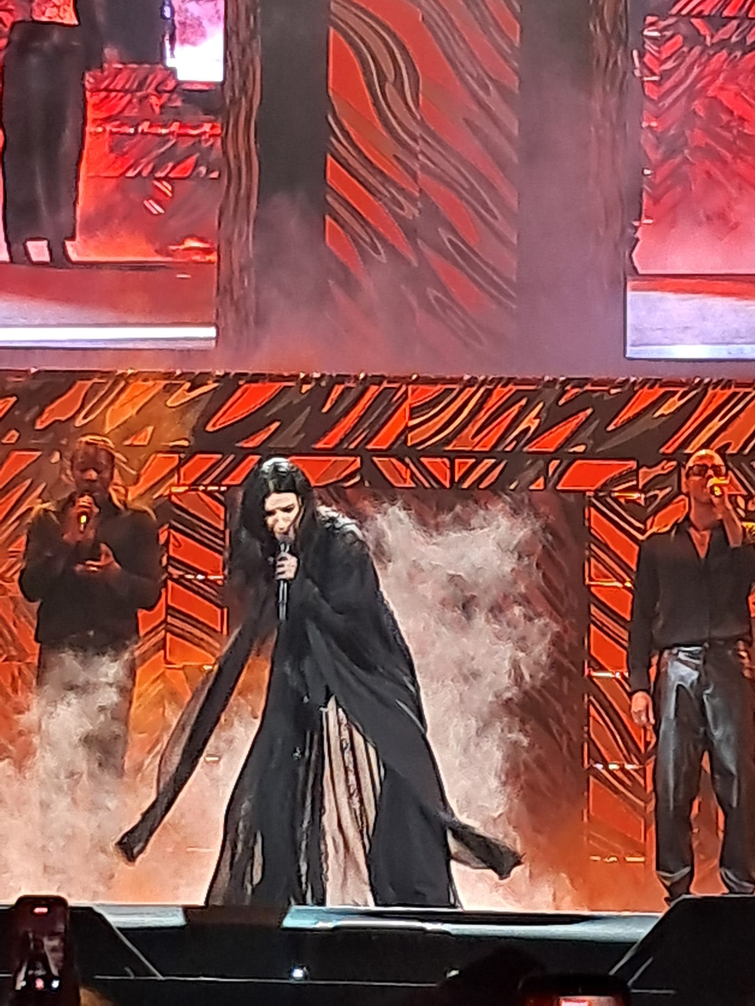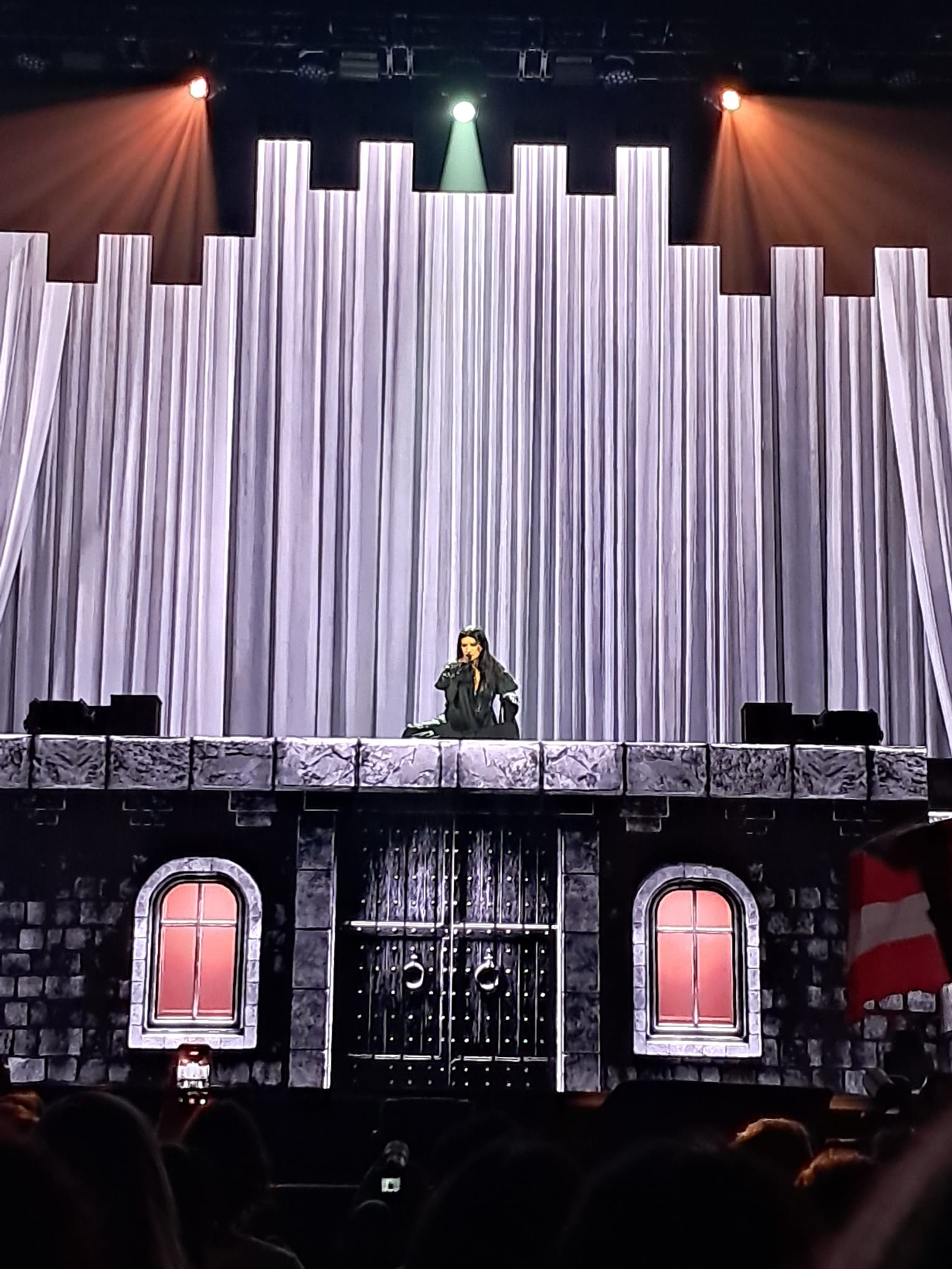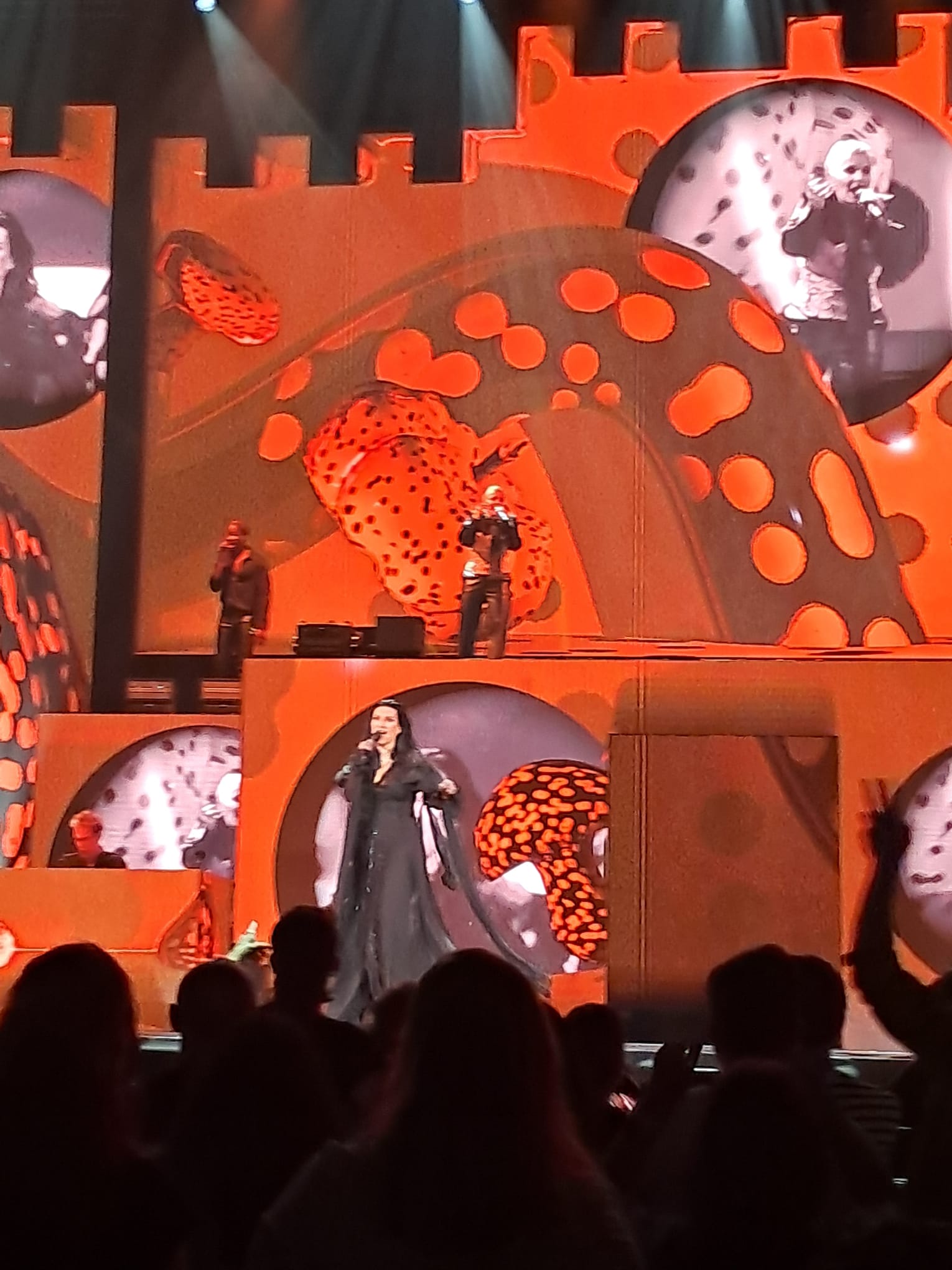 Este castillo no solo servía como decorado, sino como un lienzo vivo donde se integraba un circuito cerrado de televisión. La innovación más comentada entre el público fue la mezcla en tiempo real de las imágenes del show en directo con paisajes fantasiosos elaborados mediante Inteligencia Artificial (IA), creando una atmósfera onírica que envolvía cada interpretación de la diva.