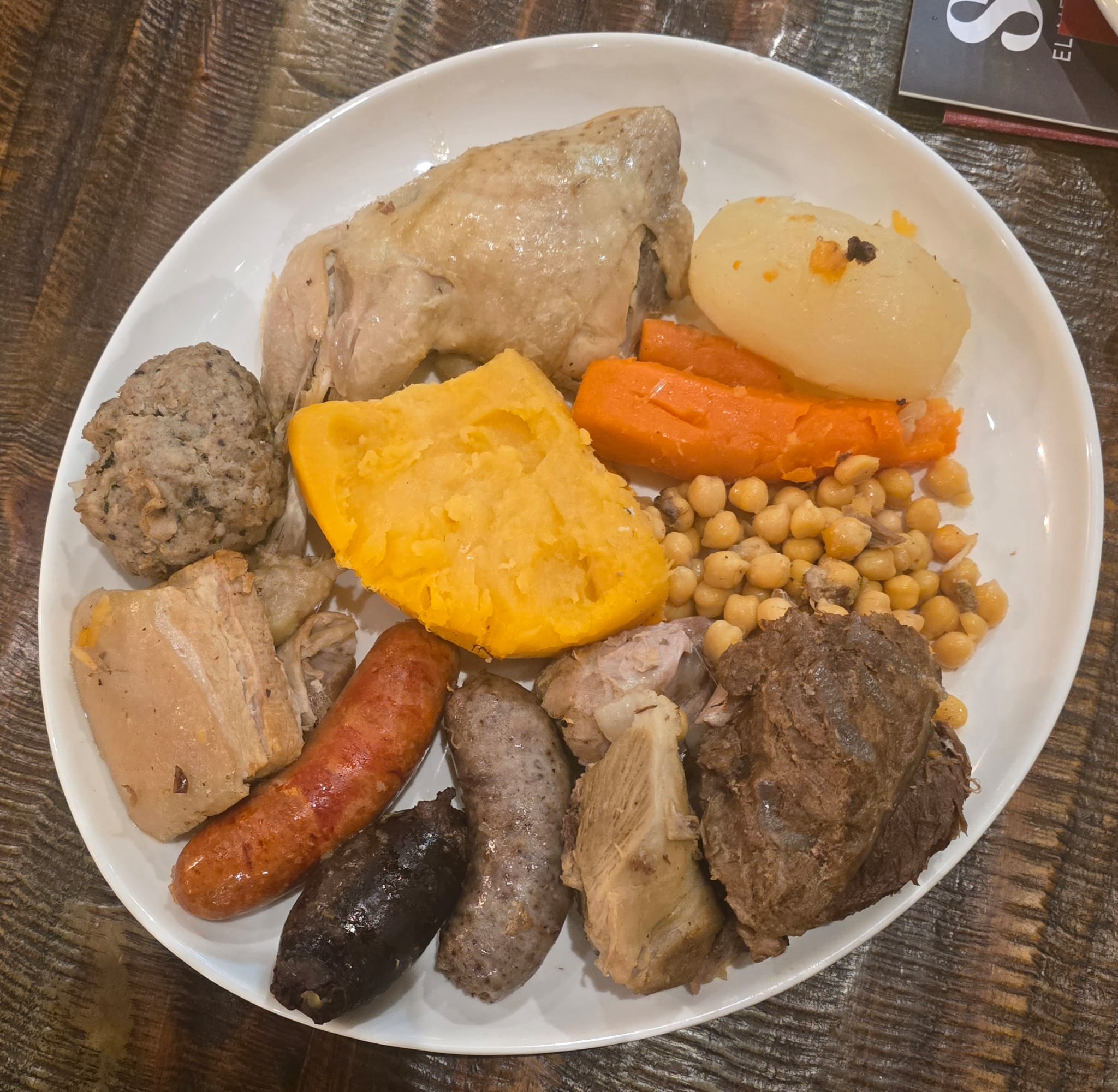 - Puchero valenciano en dos vuelcos, reinterpretado, donde la tradición del caldo y la carne se exhibe en dos tiempos diferenciados: primero el caldo puro, luego los sólidos destacados como piezas tiernas y vegetales de temporada , una receta que se hace en su casa desde siempre donde su madre Amparo lo cocina para la familia.