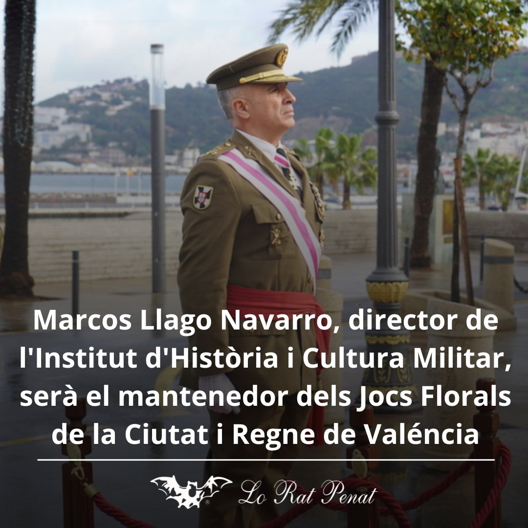 ➡️Lo Rat Penat vol fer públic el nomenament del mantenedor d’esta edició, que serà el General de Divisió En Marcos Llago Navarro, actual director de l’Institut d’Història i Cultura Militar, màxim organisme cultural de l’Eixèrcit espanyol.