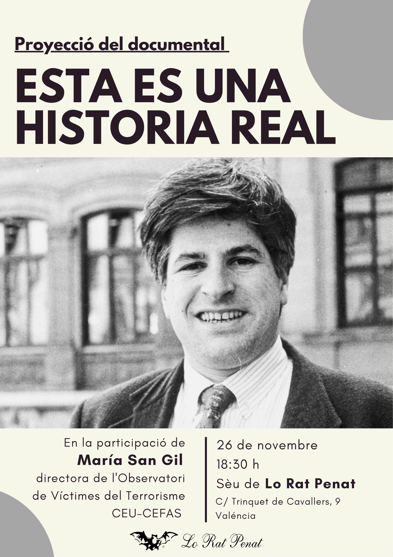Valéncia, 21 de novembre de 2025. Lo Rat Penat acollirà el pròxim dimecres 26 de novembre a les 18:30 h, la proyecció del documental «Esta es una historia real».