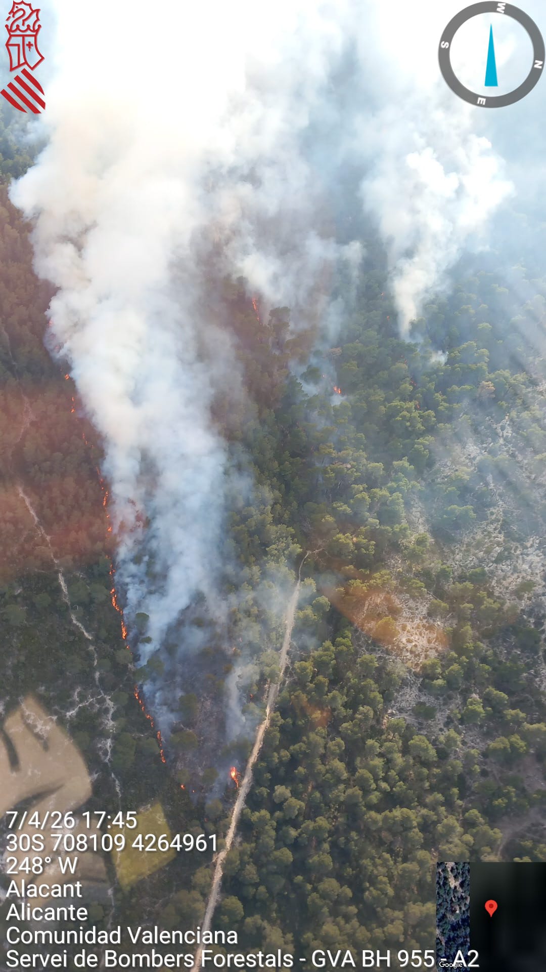 La Sierra del Maigmó, conocida como el «balcón de Alicante», presenta una orografía abrupta y accidentada, lo que dificulta enormemente el avance de los vehículos pesados de bomberos. Las llamas están devorando principalmente matorral bajo y pinar, generando una columna de humo densa que es visible desde gran parte de la provincia, incluyendo la capital y localidades vecinas como Ibi, Castalla y Agost.