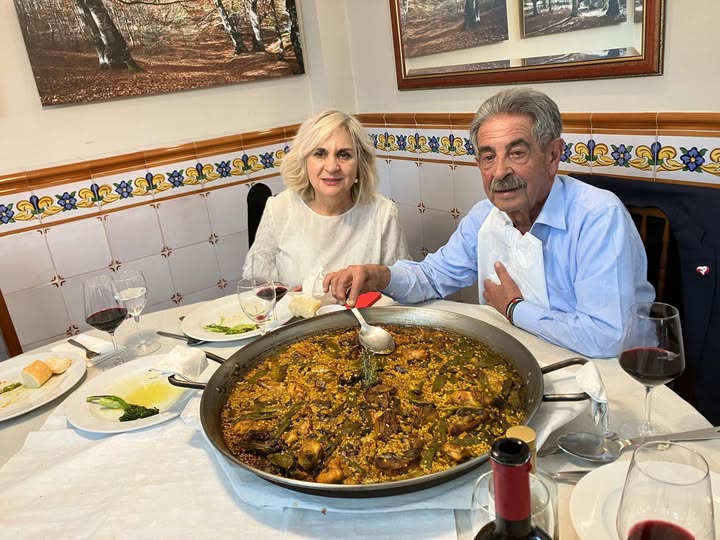 Revilla, ex-presidente de Cantabria, no es valenciano, pero su paso por el cuartel de El Saler (Valencia) en 1964 le marcó. Allí probó la paella valenciana original: arroz bomba, conejo, pollo, garrofón, bajoqueta, tomate, azafrán, aceite de oliva y cocinada en paellera sobre fuego de leña. Sin marisco. Sin chorizo. Sin guisantes. Esa es la receta madre.