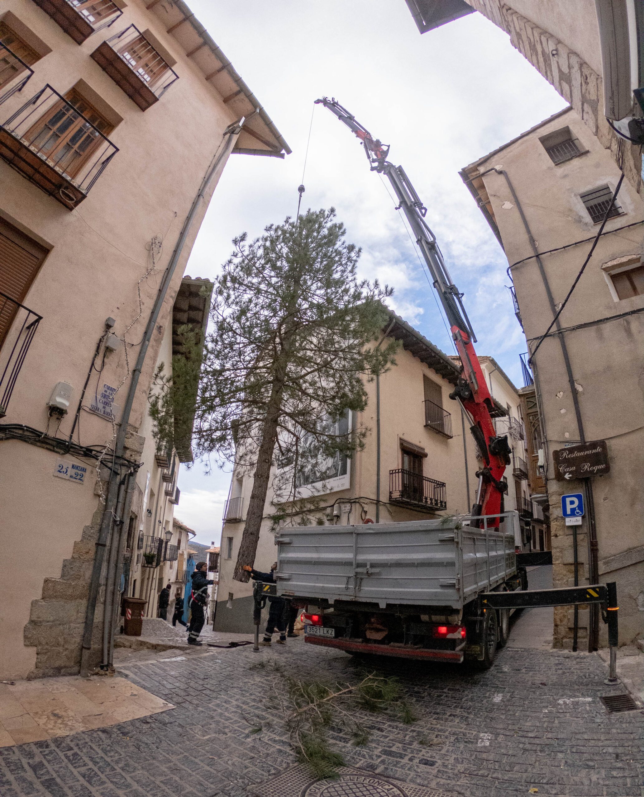 • Es el tercer año que se instala un pino del monte de Pereroles en esta ubicación que se convierte en el centro neurálgico de la Navidad morellana.