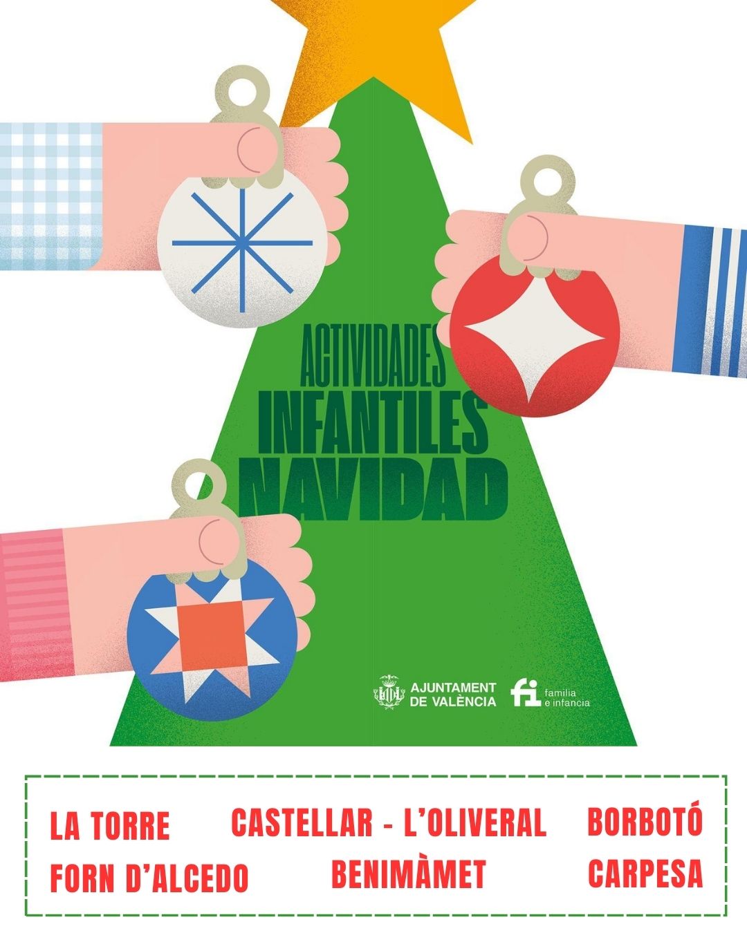 VALÉNCIA. – Las pedanías de Valéncia se convierten este fin de semana en el epicentro de la Navidad. La Concejalía de Familia, Juventud e Infancia ha diseñado una programación especial para los días 20 y 21 de diciembre que llevará talleres creativos, cuentacuentos y desfiles musicales a Borbotó, Carpesa, La Torre, Forn d’Alcedo, Benimàmet y Castellar-l’Oliveral.