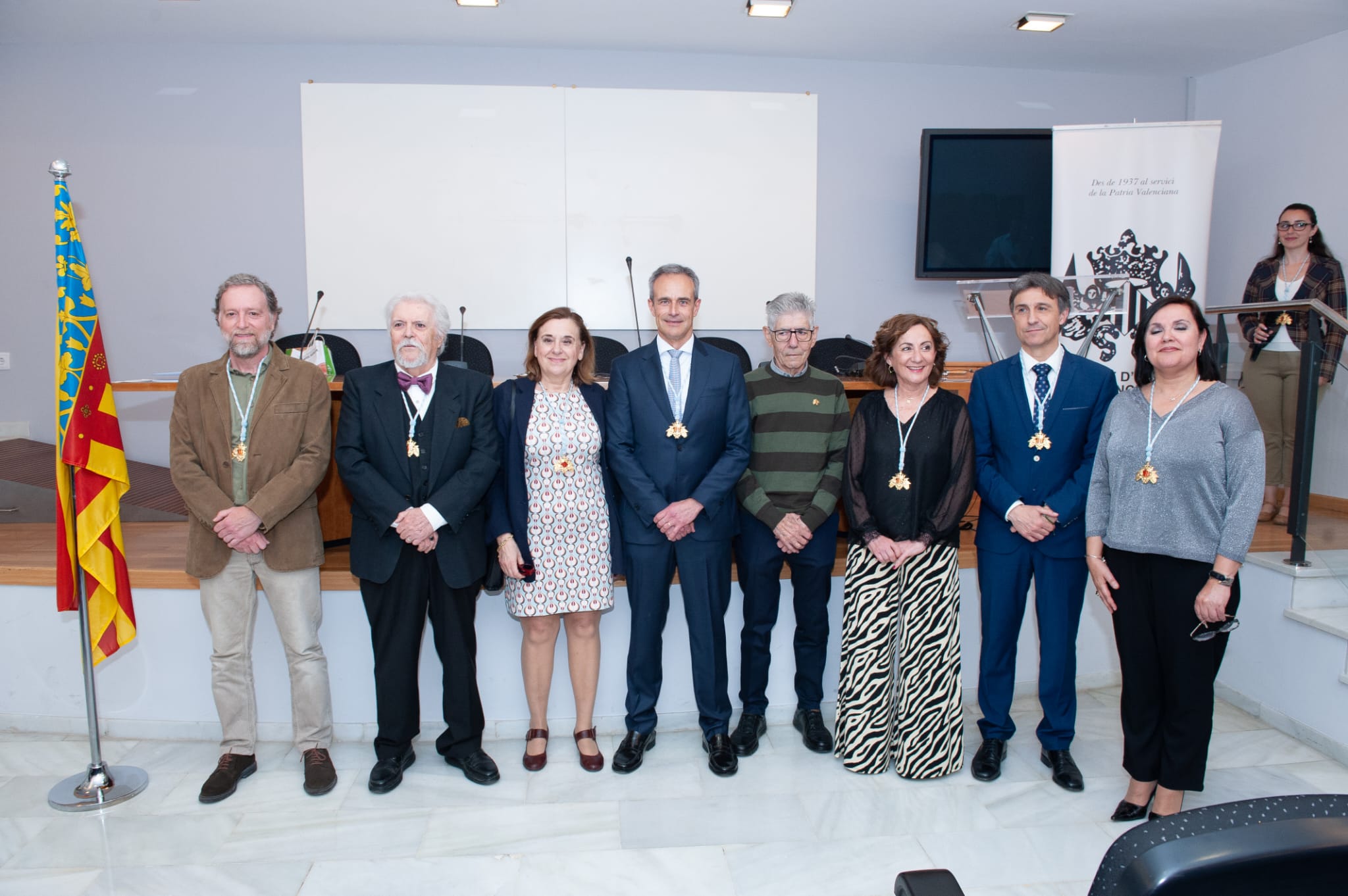 Se presentà als nous membres, corresponents i de numero, que han desenrollat a lo llarc de la seua vida una destacada trayectoria investigadora en diversos camps com la pedagogia, el mig ambient, agricultura i lliteratura valenciana, imponent-los la medalla de l’Institut.