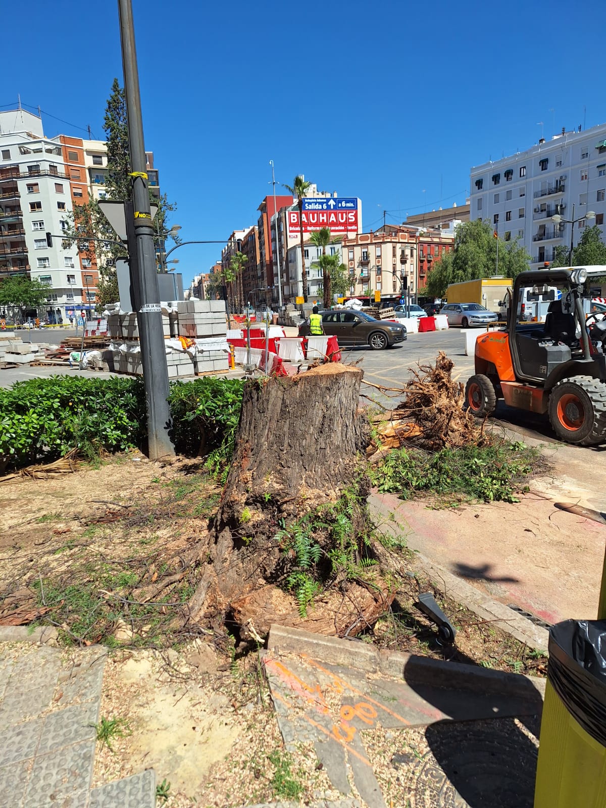 La desaparición de un ficus histórico en Giorgeta y el reciente desmantelamiento de la masa arbórea en el cruce con la calle Cuenca encienden las alarmas sobre el modelo de "renaturalización" del actual Gobierno municipal