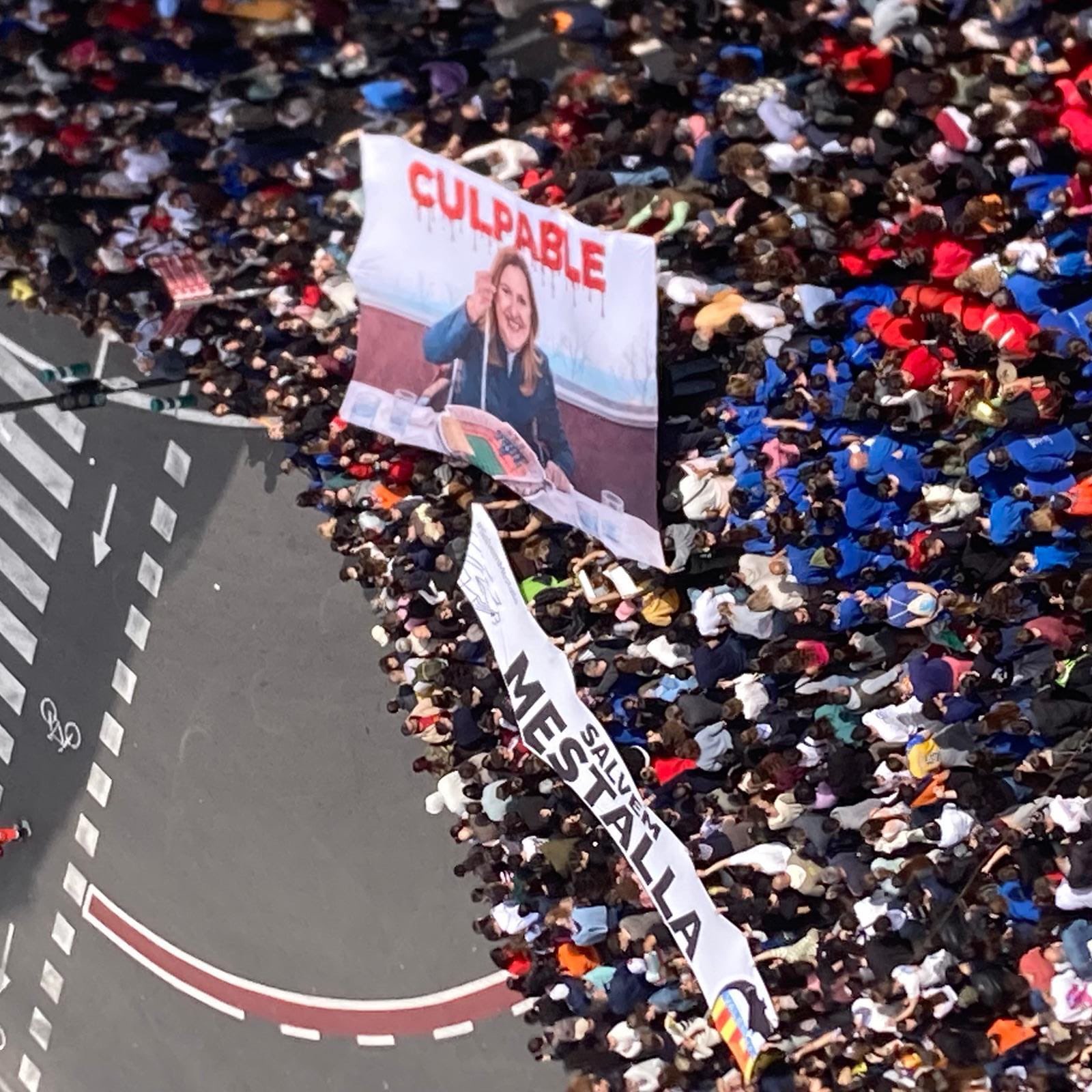 Minutos antes de que la Fallera Mayor diera la orden de comienzo, decenas de aficionados han desplegado pancartas amarillas con lemas que ya son virales en redes sociales: «Catalá culpable» y «No al pelotazo de Mestalla». La protesta, que busca aprovechar el escaparate internacional de las Fallas, denuncia lo que la asociación considera una «traición histórica» a los intereses de la ciudad y del club.