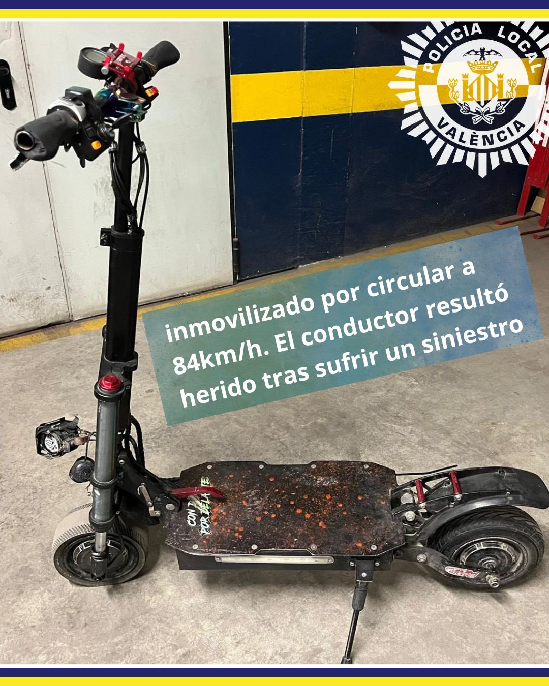 La Policía Local de Valencia ha alertado sobre el incremento de kits de modificación que se venden de forma ilegal o se instalan de manera doméstica. Un patinete circulando a 84 km/h carece de la estructura, frenos y neumáticos necesarios para garantizar la estabilidad.