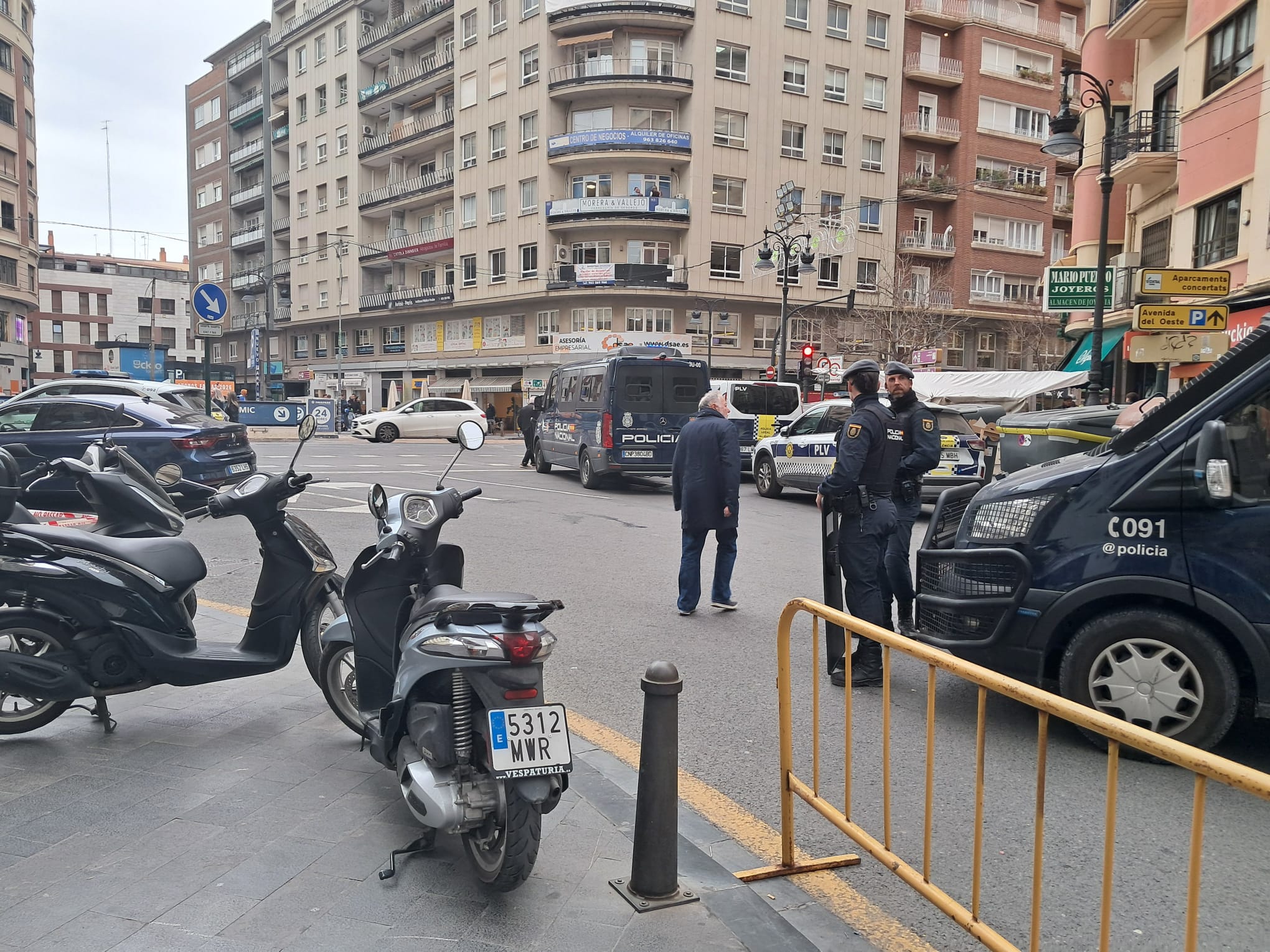 También tenemos el edificio de la Generalitat Valenciana el Palacio de las Comunicaciones, que tampoco se utiliza para montar en el hangar de carga una zona de seguridad para protección local o para policía, por contra venos en calles como San Vicente furgonetas como la del SESCV. Sinsentidos absolutos de un refuerzo de seguridad evidente pero que sólo sufren los ciudadanos, no los políticos desde su balcón…