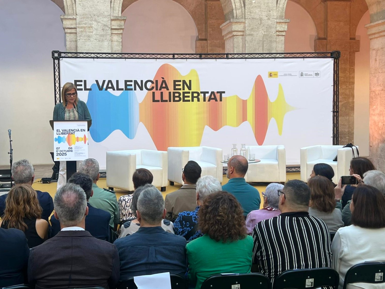 La delegada del Gobierno en la Comunidad Valenciana, Pilar Bernabé, ha presidido la mesa redonda ‘El valenciano en libertad’ al claustro del Palacio del Temple, sede de la Delegación del Gobierno en la Comunidad Valenciana. Allí, Bernabé ha destacado que se trata “de un proyecto que nace de la voluntad de recordar, reconocer y proyectar a aquellas y aquellos que en tiempos de dictadura se jugaron mucho para cantar en valenciano”.
