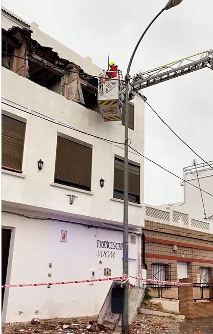 ⚠️ Se retira toda la parte susceptible de caída a vía pública y se baliza la zona para garantizar la seguridad de vecinos y viandantes.