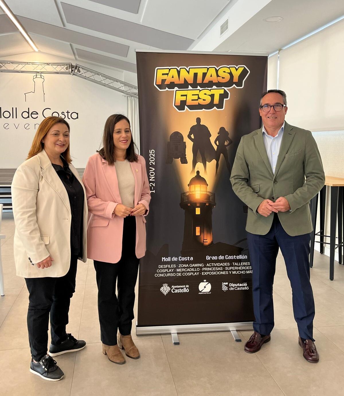 El presidente de la Autoridad Portuaria, Rubén Ibáñez, ha presentado hoy, junto a la teniente alcalde del Grao, Ester Giner, el festival ‘Fantasy Fest 2025’, una gran cita para el ocio infantil, juvenil y familiar, que tendrá lugar los días 1 y 2 de noviembre en la zona lúdica de PortCastelló. En la rueda de prensa ha participado también, Ana Rosa Sanfeliu, representante de la organización del Festival que ha detallado las actividades y la programación del evento.