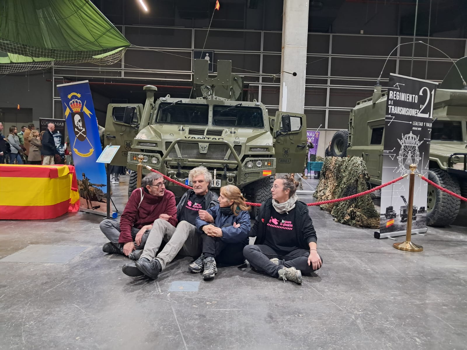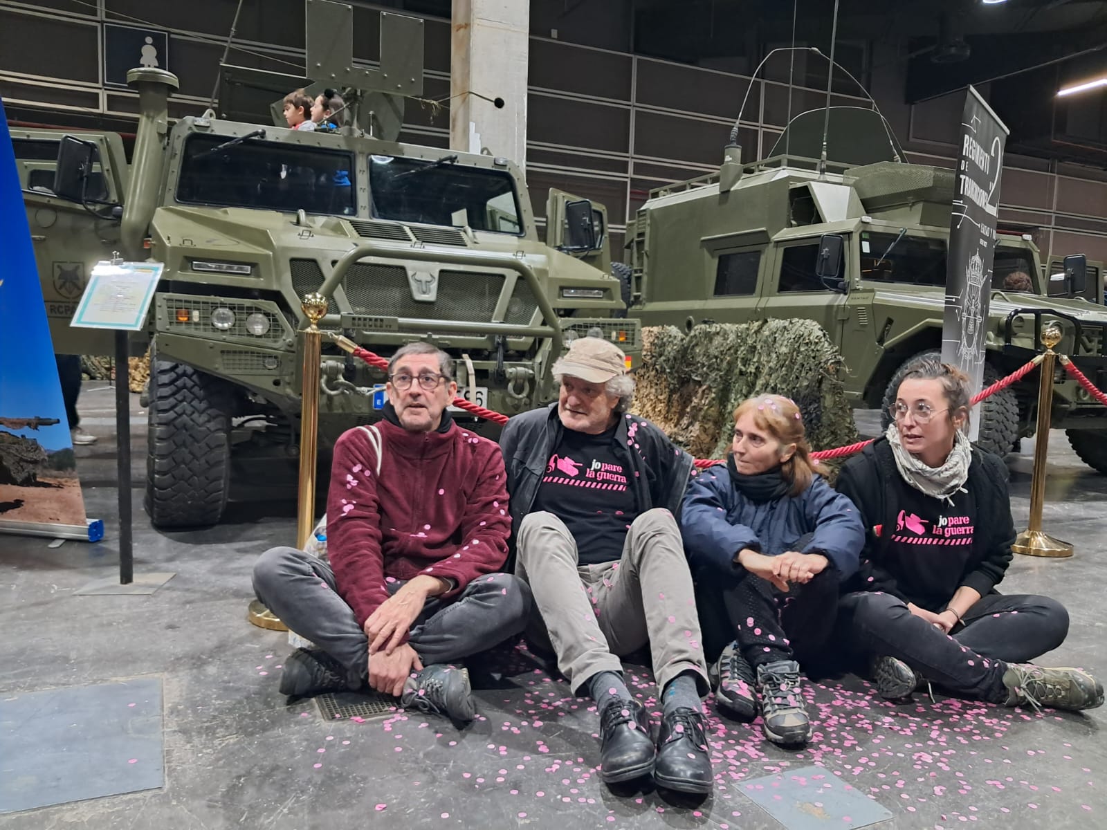 Cuatro activistas se han sentado frente a un destacamento del ejército en ExpoJove durante la inauguración oficial para protestar por la presencia del ejército en la Feria infantil y Juvenil de ExpoJove en Valencia.