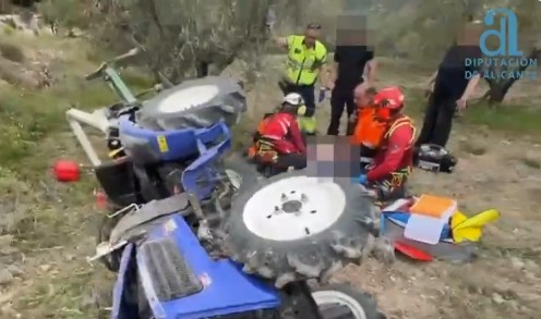 Rescate crítico en Beniardá: un agricultor de 52 años es salvado tras volcar su tractor