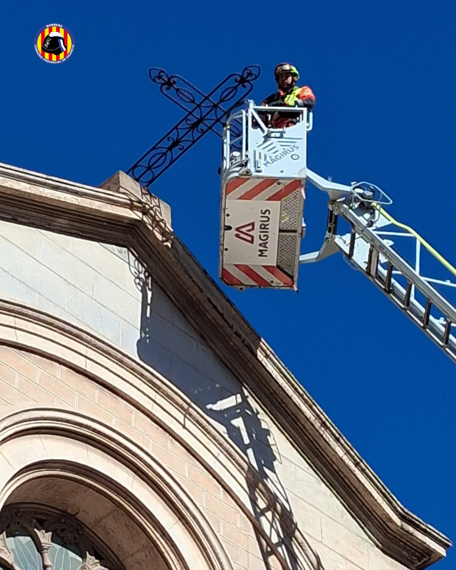 La prevención se ha convertido en la prioridad absoluta para los servicios de emergencia en la provincia de Valencia. En una jornada marcada por la activación de avisos meteorológicos y rachas de viento que han puesto a prueba las infraestructuras urbanas, efectivos del Consorci Provincial de Bombers de Valéncia, destinados en el parque de Gandia, han protagonizado una de las intervenciones más delicadas del día: la retirada de la cruz de la iglesia parroquial de l’Alqueria de la Comtessa.