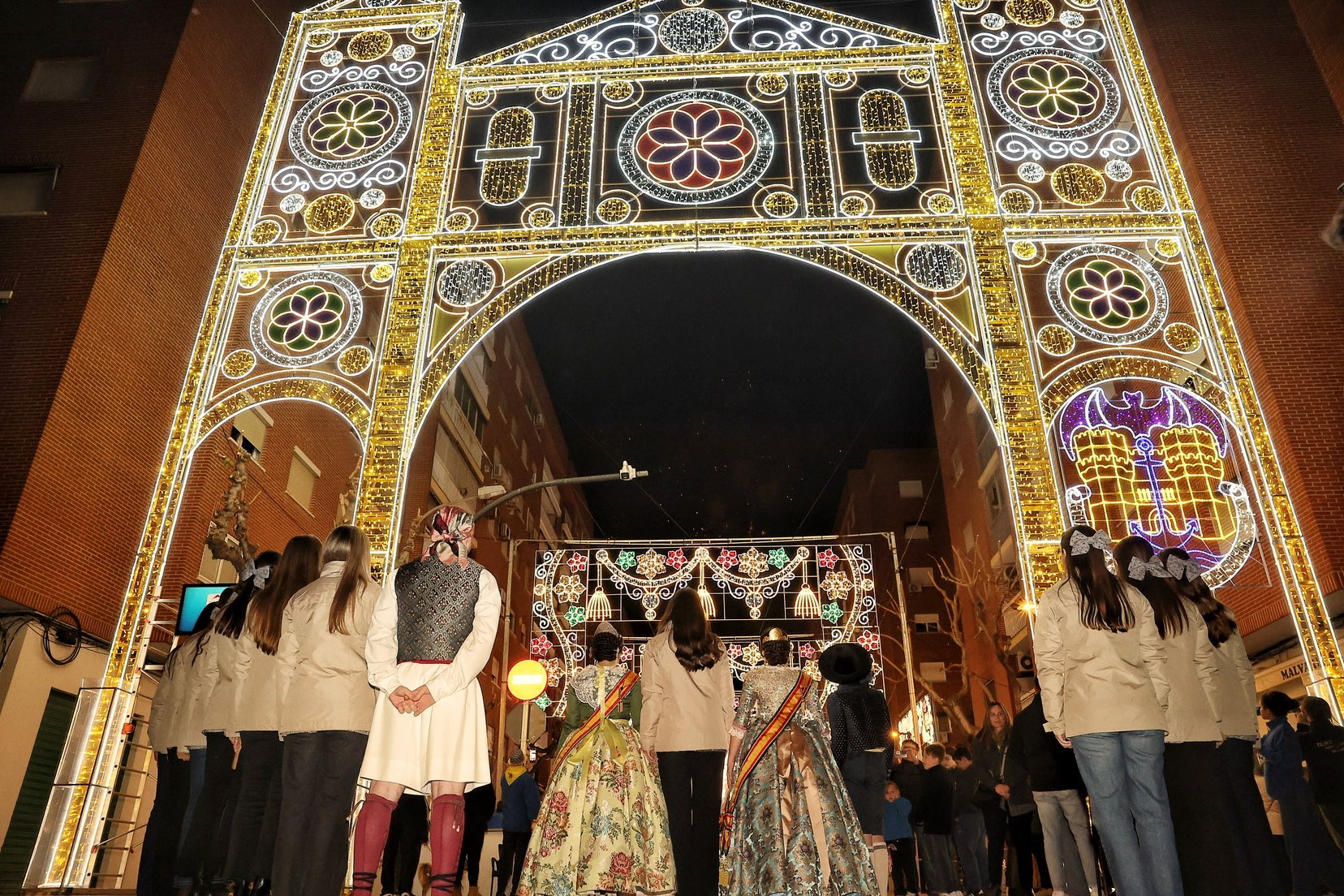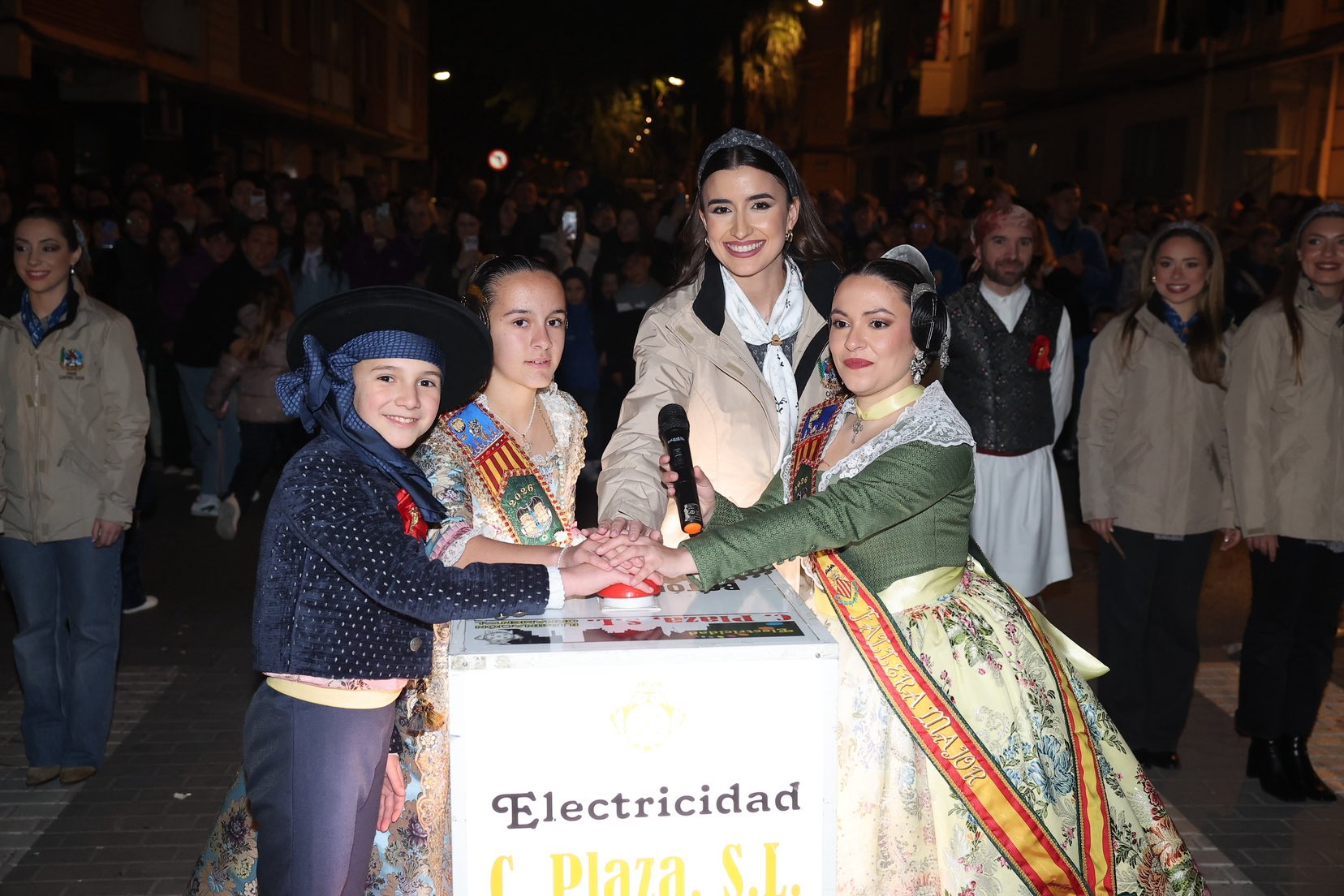 La Fallera Mayor de Valencia y su Corte de Honor presiden el encendido en la demarcación, consolidando este enclave como un punto de referencia visual en el barrio.