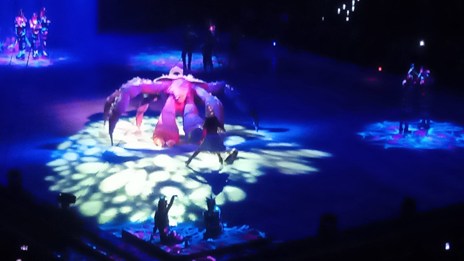 El ritmo no decayó. Vaiana y el semidiós Maui protagonizaron uno de los bloques más dinámicos. Con saltos y piruetas que evocaban la fuerza de las olas, la narrativa oceánica culminó en un clímax visual cuando el corazón de Te Fiti fue restaurado bajo una lluvia de luces que transformó el hielo en un océano luminiscente.