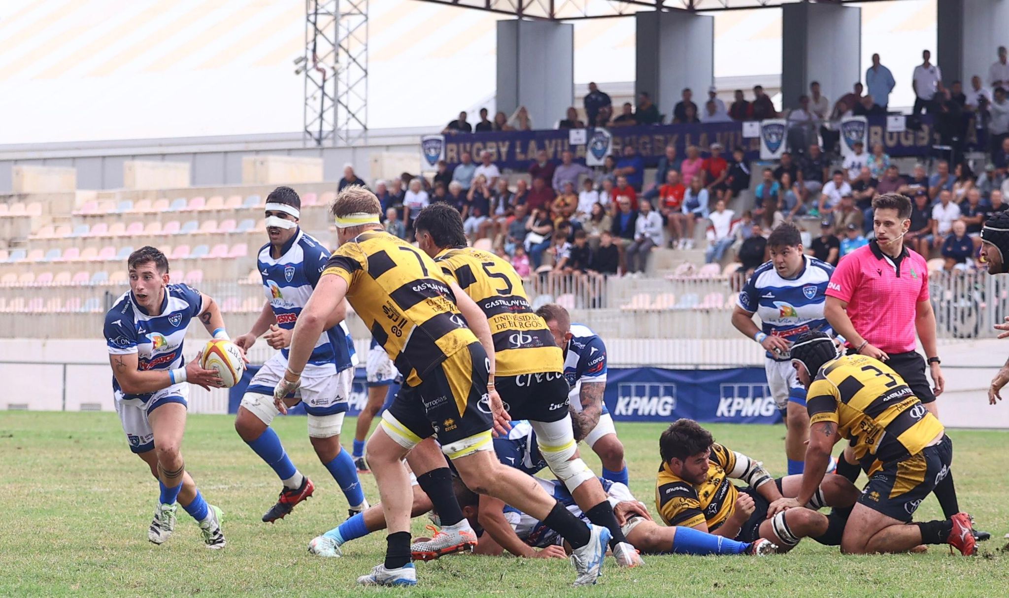 El Huesitos La Vila continúa intratable en Villajoyosa tras vencer por 32-25 al Recoletas Burgos Caja Rural en un duelo intenso y con dominio alterno. Los alicantinos arrancaron con fuerza: un ensayo de Tomás Etcheverry en los primeros compases puso el 5-0, y un puntapié de castigo posterior amplió la renta hasta 8-0 en apenas diez minutos.