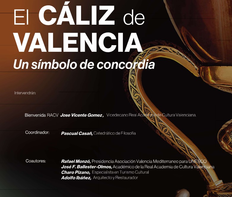 El próximo 28 de enero, el Salón de Actos de la Real Academia de Cultura Valenciana (RACV), ubicado en la histórica calle Avellanas, será el escenario de la presentación del libro El CÁLIZ de VALENCIA: Un símbolo de concordia.