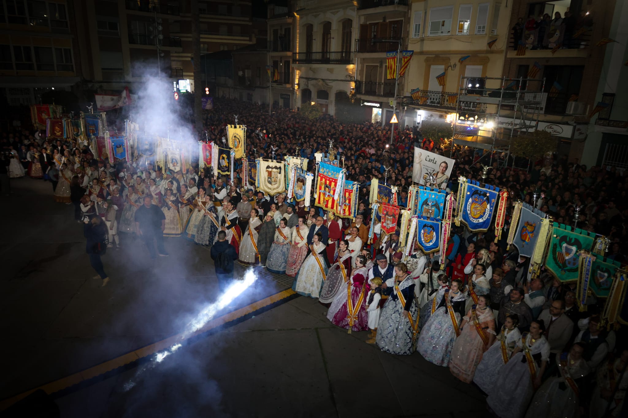 Aunque el clímax llegó al anochecer, la fiesta comenzó a las 08:00 horas con una macrodespertà que recorrió las arterias principales de la ciudad. Tras el estruendo inicial, los falleros se reunieron en la tradicional ‘xocolatà’, elaborada por ADISTO. Este año, la celebración dio un paso adelante en accesibilidad al incluir, por primera vez, un punto de bollería sin gluten para personas celíacas.
