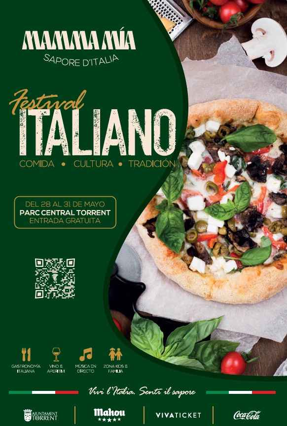 Torrent, 27/04/2026. El Ayuntamiento de Torrent presenta uno de los eventos más ambiciosos, innovadores y atractivos de su agenda cultural: “Mamma Mia, Sapore d’Italia & All Star Cheesecake”, un festival único que convertirá la ciudad en el epicentro de la gastronomía, el espectáculo y el ocio del 28 al 31 de mayo en el Parc Central.