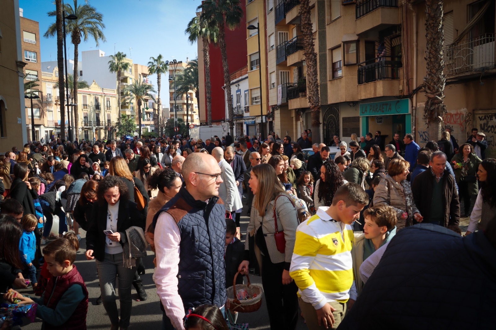 A las 12:15 horas, la Parroquia de San Luis Bertrán será el escenario de la bendición e imposición de medallas a los 19 clavarios y clavariesas de este año. Tras la misa, los más pequeños recorrerán las calles del barrio en un desfile que culminará con el tradicional recitado del verso.