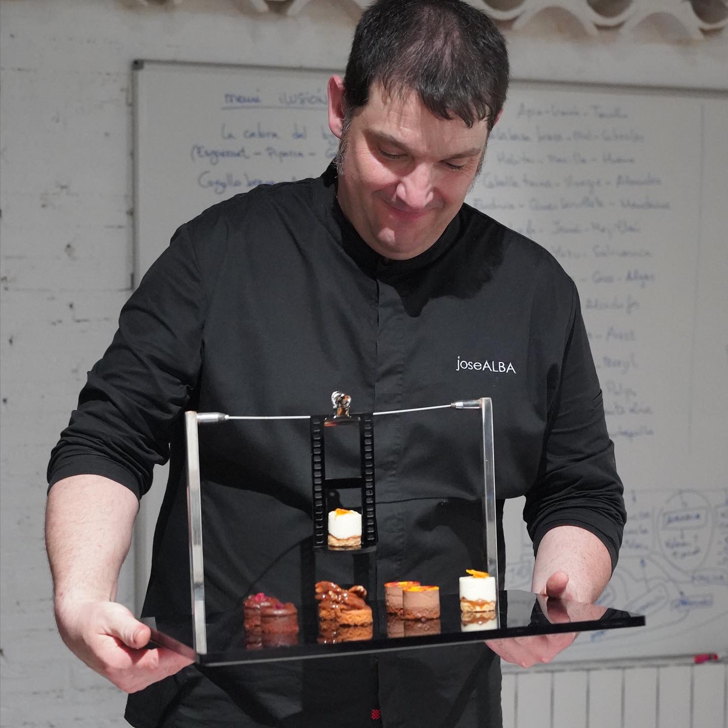 José Alba, maestro chocolatero natural de Torrent, combina una sólida formación técnica con una pasión arraigada y creativa por el oficio, fusionando cocina e investigación. Proviene de la quinta generación al frente de la histórica casa familiar Casa La Curra en Torrent, donde fue criado entre los fogones, la pastelería tradicional y la panadería, aprendiendo primero de su madre y su tía en un entorno de tradición artesana. Aunque originalmente cursó estudios muy distintos -ingeniería en telecomunicaciones, una maestría en Ingeniería Biomédica, y colaboró en un grupo de investigación de la Universitat Politècnica de Valencia (UPV)- en 2011 decidió volver al oficio que lo llamaba: la cocina, la pastelería y la chocolatería artesana.