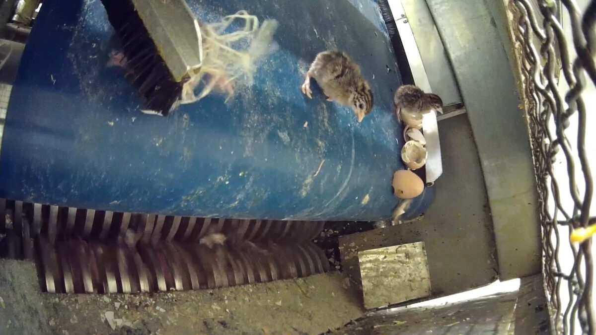 En el vídeo difundido por L214 se observa cómo miles de pollitos son trasladados en cintas transportadoras hacia una trituradora mientras aún están conscientes. Otros son aplastados con un palo antes de ser arrojados al mismo mecanismo. La investigación se realizó en las instalaciones de Boyé Accouvage, una incubadora dedicada a la cría de pollos de engorde.