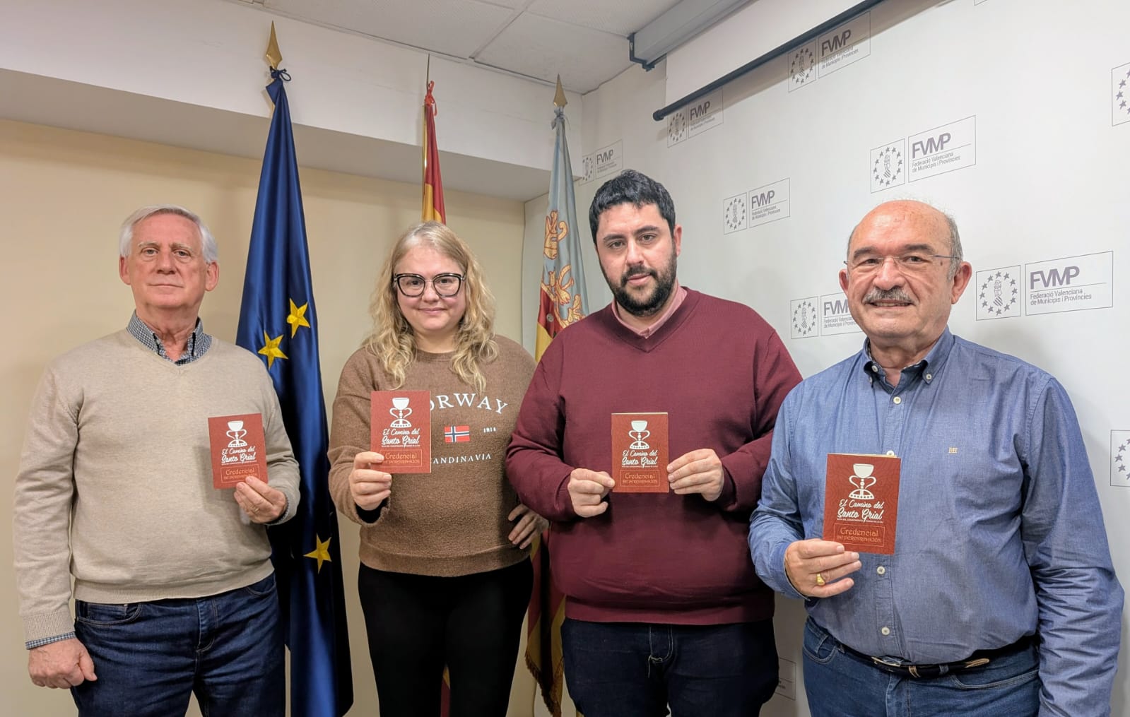 25 de febrero de 2026. El presidente de Unión Municipalista y vicepresidente de la Federación Valenciana de Municipios y Provincias (FVMP), David García, ha mantenido una reunión de trabajo con la presidenta de El Camino del Santo Grial en Europa, la Dra. Ana Mafé García, y el secretario de la entidad, Jesús Gimeno Peris, con el objetivo de conocer de primera mano las propuestas para consolidar y proyectar este itinerario histórico-cultural en la Comunitat Valenciana.