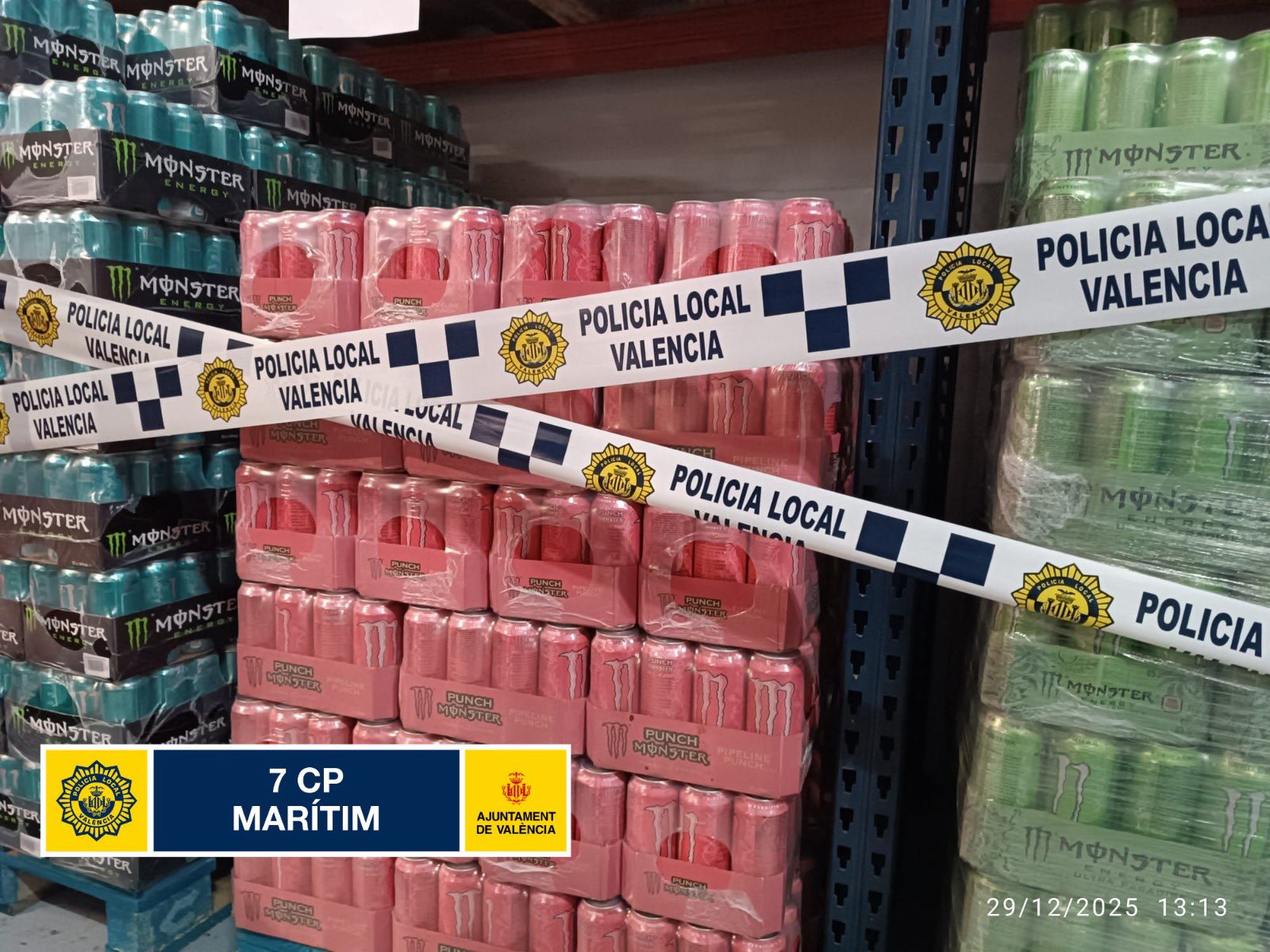 VALENCIA | La Policía Local de Valencia ha llevado a cabo una de las mayores intervenciones de productos alimentarios irregulares de los últimos meses. Agentes de la unidad de distrito han decomisado un cargamento masivo compuesto por 73.000 latas de refrescos y 3.000 chocolatinas en un establecimiento de venta al por mayor ubicado en el Distrito Marítimo.