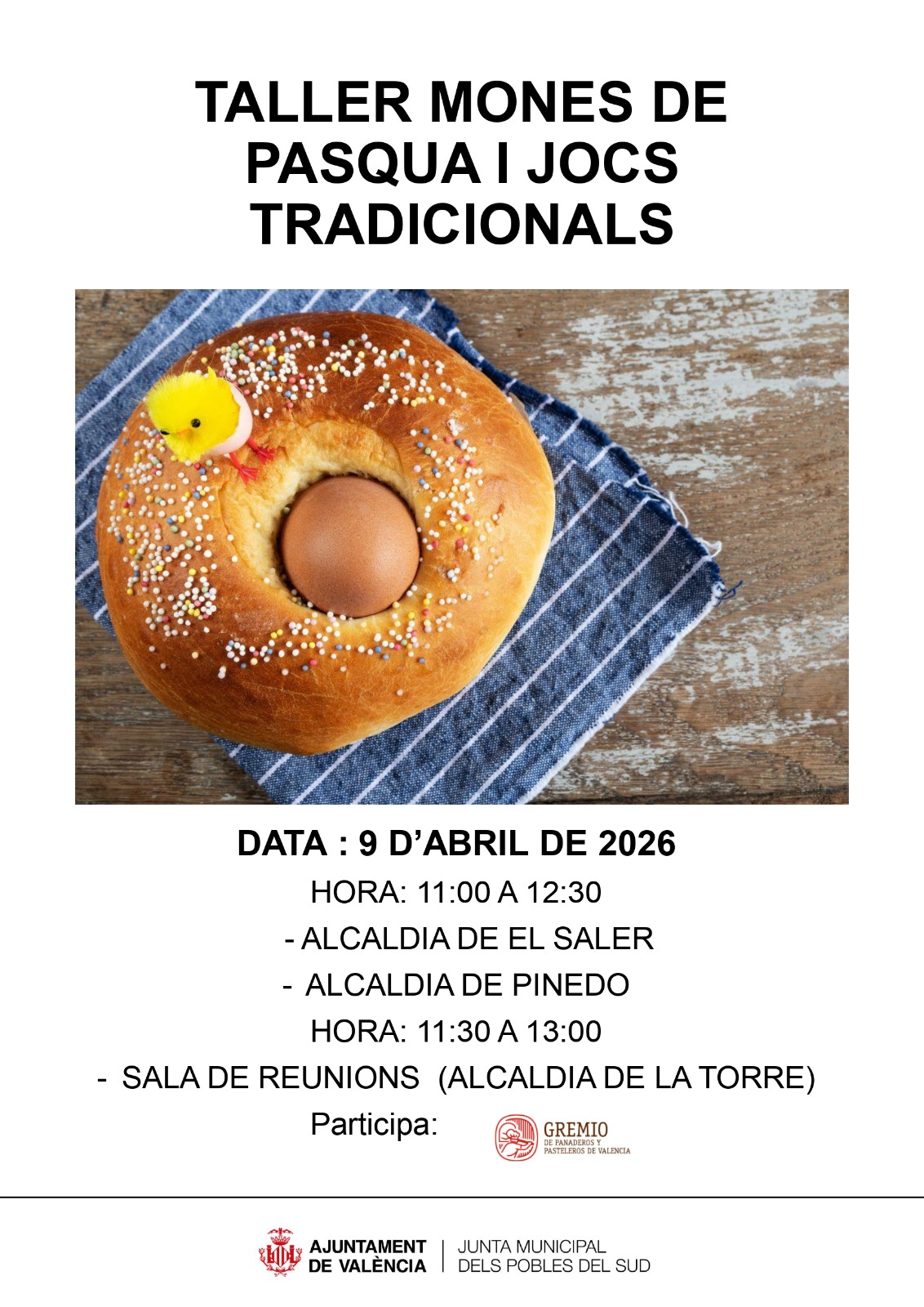 VALÉNCIA, martes 7 de abril de 2026 – En el marco de las vacaciones de Semana Santa, el Ayuntamiento de Valéncia ha organizado una iniciativa cultural y gastronómica dirigida al público infantil de las pedanías de Pinedo, El Saler y La Torre. Este jueves, 9 de abril, los más pequeños podrán participar en talleres didácticos para aprender a confeccionar la tradicional mona de Pascua, uno de los dulces más emblemáticos de la región.