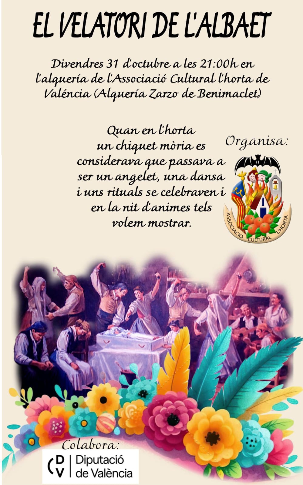 La Asociación Cultural L’Horta de Valéncia invita a los vecinos y amantes de las tradiciones a una velada única el próximo viernes 31 de octubre en la Alquería de Zarzo/Bonora, ubicada en el emblemático barrio de Benimaclet. En lugar de sumarse a la celebración de Halloween, la asociación propone redescubrir una antigua costumbre valenciana: el Velatorio del Albaet, un rito profundamente arraigado en la huerta que conmemora la muerte de un niño con fe, comunidad y esperanza.